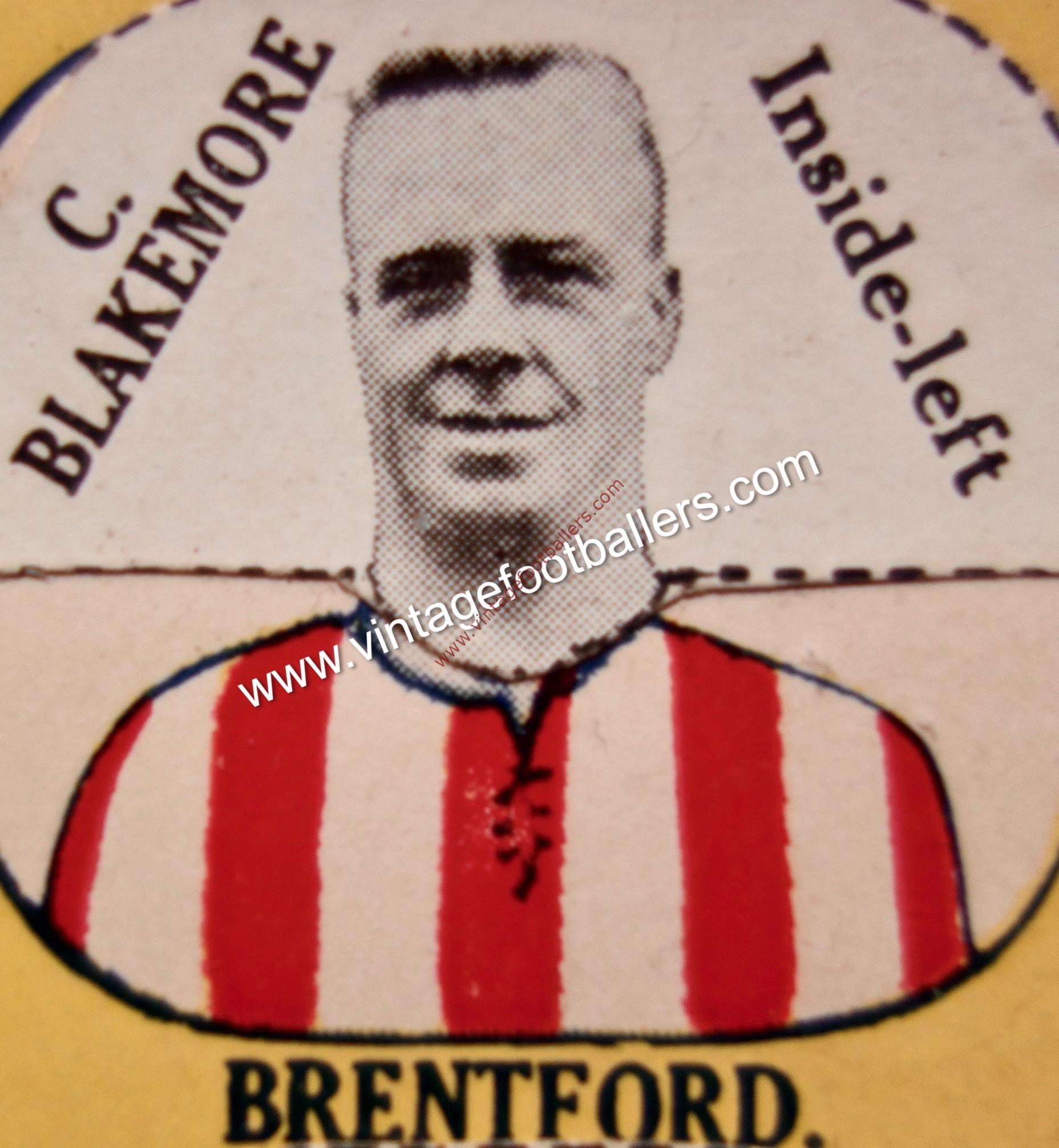 Stourbridge born inside forward Cecil Blakemore played for Heath Villa in 1920 before joining Aston Villa’s books during 1921-22 as an amateur without playing for their first eleven. He played for Stourbridge and Redditch Town before joining Second Division Crystal Palace in December 1922 making his Football League debut at Port Vale the same month. He became a Palace regular over 5 seasons at Selhurst Park, firing 20 goals in 1926-27 and only being behind Percy Cherrett in the scoring charts for 3 seasons. By the time he joined Bristol City in May 1927 he had scored 56 goals in 141 appearances. He played 2 seasons at Ashton Gate top scoring in 1928-29 and netting 20 goals in 42 appearances, before joining Brentford in May 1929, where he enjoyed another 2 seasons scoring 28 goals in 83 appearances. He joined Norwich City in August 1931 and continued his record as a consistent contributor of goals, top scoring for the club in 1931-32 and netting 29 times in 70 appearances before joining Swindon Town in June 1933. He scored 8 goals in 27 appearances during 1933-34 before joining non league Brierley Hill Alliance in 1934.