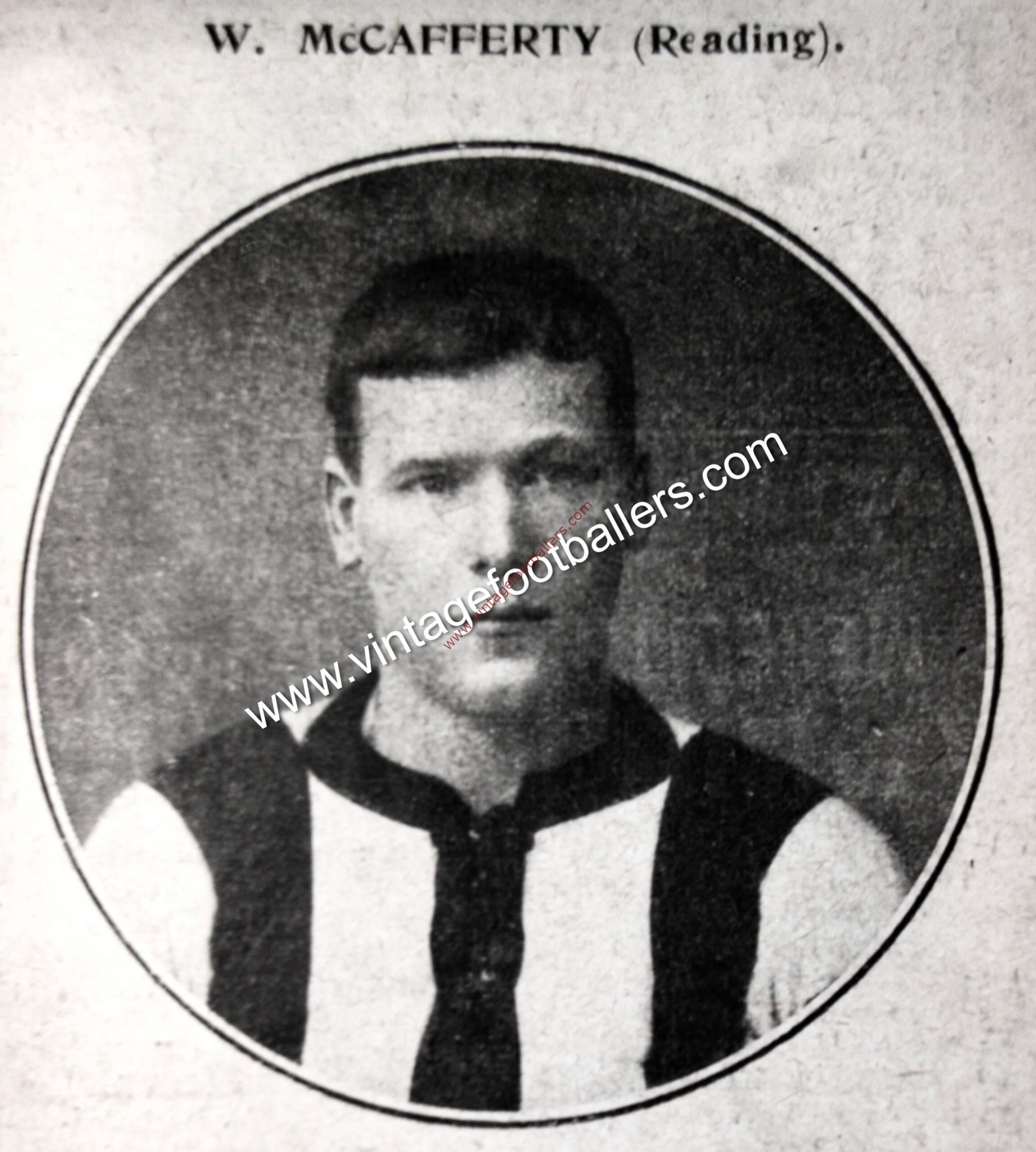 Rutherglen, Lanarkshire born outside right Bill McCafferty began his football career with Rutherglen Glencairn in 1900. He was signed by Celtic in March 1902, making his first team debut in a 1-0 defeat to Hibernian in the Scottish Cup on April 26. He made a solitary Scottish League appearance for The Bhoys against Rangers in a 1-1 home draw in October before being loaned to First Division Bolton Wanderers, where he made his Football League debut at Aston Villa the following month. He made 8 appearances for Bolton during the remainder of the 1902-03 season before returning to Celtic. He then signed for Stenhousemuir in November 1903.