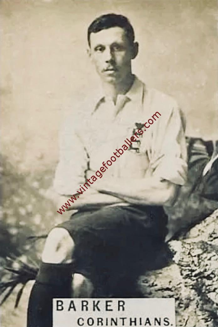 Kensington, London born left half Richard Barker represented Repton School, where he attended between 1883 and 1887 where he was in the football XI in 1886. Barker played football as wing half on both the left and the right flanks. He made 43 appearances for Corinthians between 1893 and 1900. He also played for The Casuals and helped them reach the first F.A. Amateur Cup Final in 1894, where they lost to Old Carthusians at The Athletic Ground, Richmond.
