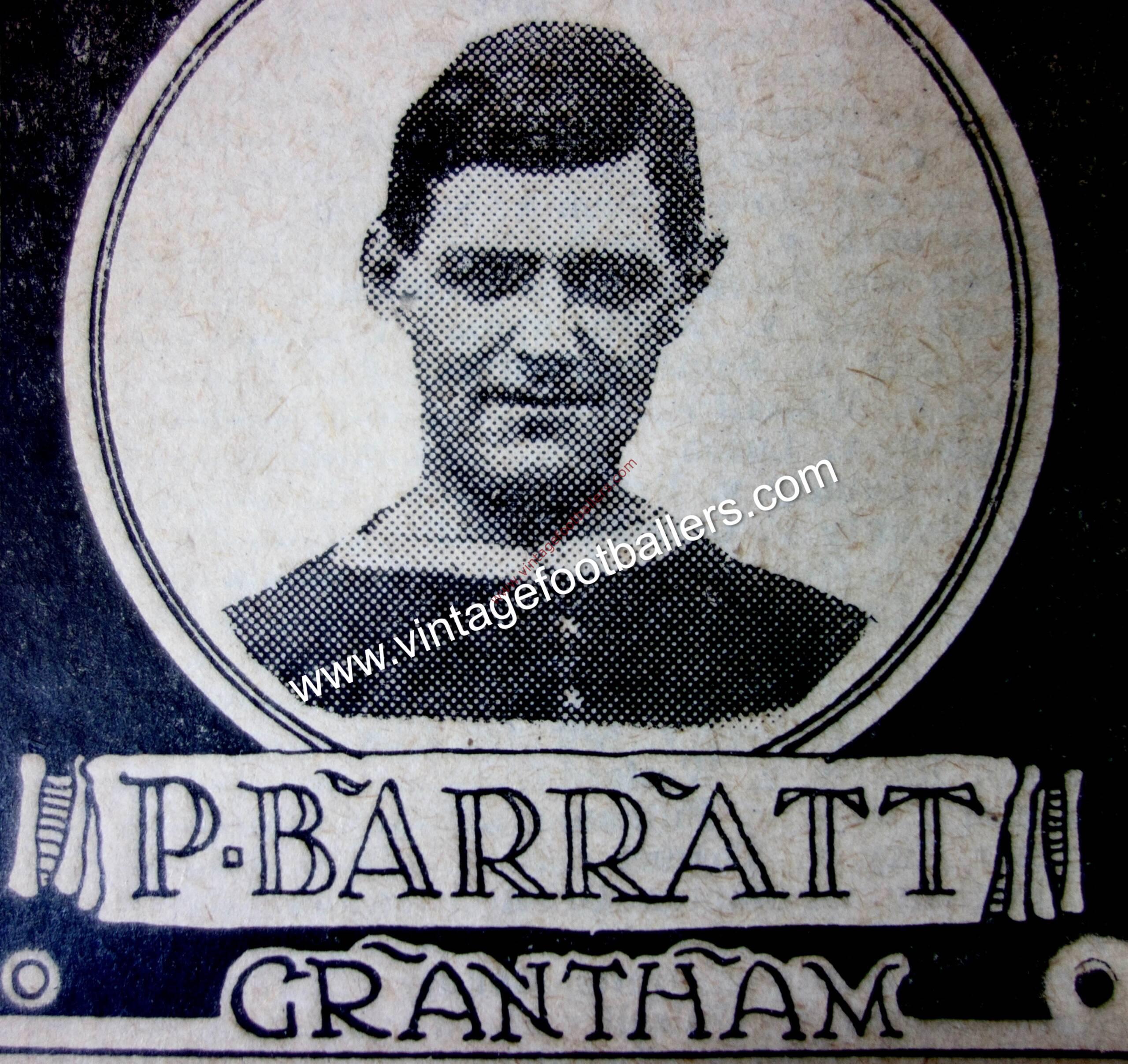 Annesley, Nottinghamshire born full back Percy Barratt joined Annesley St Albans after the First World War before joining Second Division club Nottingham Forest in 1919, for whom he made his Football League debut against Stockport County in September 1919. After 21 matches in 1919-20 he struggled for a place in the Forest first eleven until 1924, whereafter he was a regular starter for five seasons, playing his final match of 230 appearances in April 1930, having scored 17 times of which 15 were from the penalty spot. In 1930 he joined Midland League club Grantham, his last known club before his retirement.