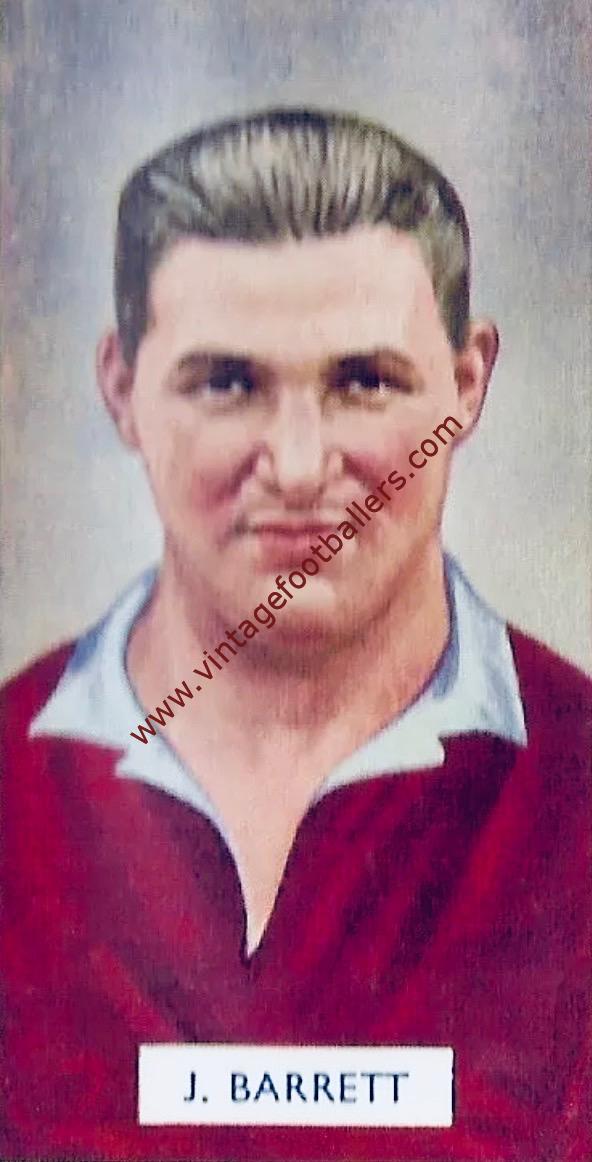 He played 467 times for The Hammers over 13 years, scoring 53 goals. During the Second World War he was a member of West Ham’s team that won the 1940 Football League War Cup.Ā After a retiring from playing, Barrett had a spell in charge of the West Ham United ‘A’ team, when he played in the same team as his son during 1945-46.