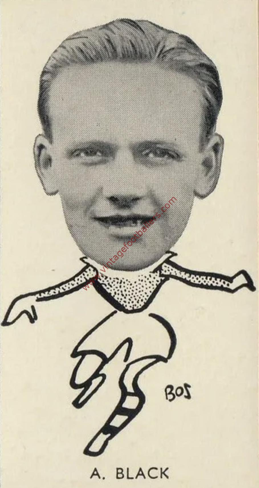 Stirling born inside forward Andy Black began his football career with West End Rangers in 1932 and played for Shawfield in 1933 before joining Heart of Midlothian in 1934, making his Scottish League debut in a defeat at Hamilton Academical in April 1934. Black was a prolific scorer with Hearts before the Second World War, scoring 29 goals in 34 games in the 1936-37 season, before finishing as top scorer in the Scottish League with 40 goals in 38 appearances in the following season. He was widely credited the following season as being the first player to score a hat-trick against Rangers at Ibrox. However this had been first achieved by Willie Wilson of Hearts in October 1915. He scored 115 goals in 155 appearances for Hearts playing for them until May 1946, when he played his final game in a Victory Cup defeat to Hibernian at Tynecastle.