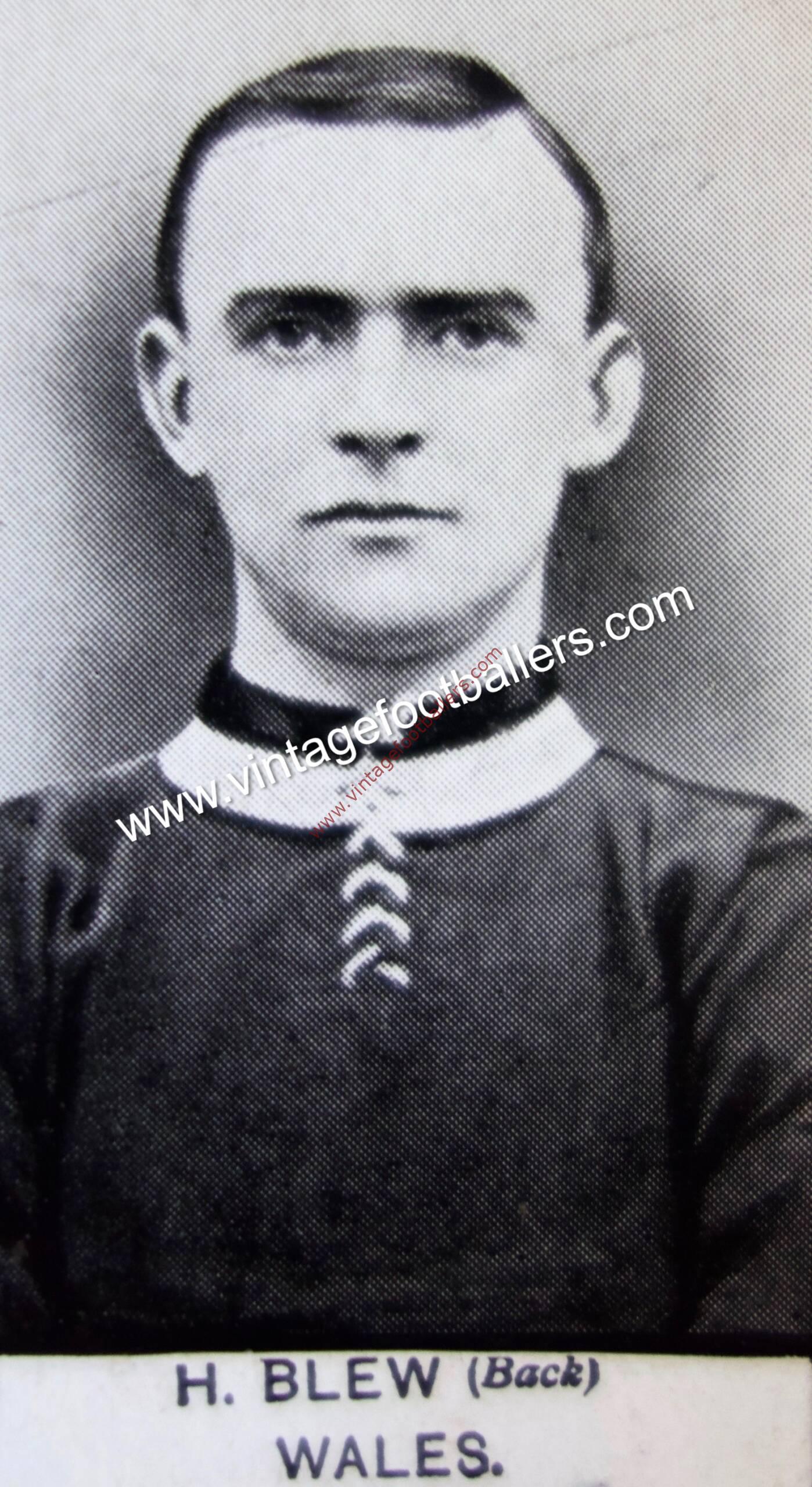 Wrexham, Flintshire born full back Horace Blew played for Wrexham Old Boys in 1895 and Rhostyllen in 1896 before joining hometown professional Welsh League club Wrexham in 1897. He represented Wales on 22 occasions, making his Welsh international debut against Ireland atĀ Grosvenor Park, Belfast in March 1899, and was an automatic selection for the team between 1902 and 1909, missing only five games in that time, playing his final international in a 1-0 defeat to England at Cardiff Arms Park in March 1910.