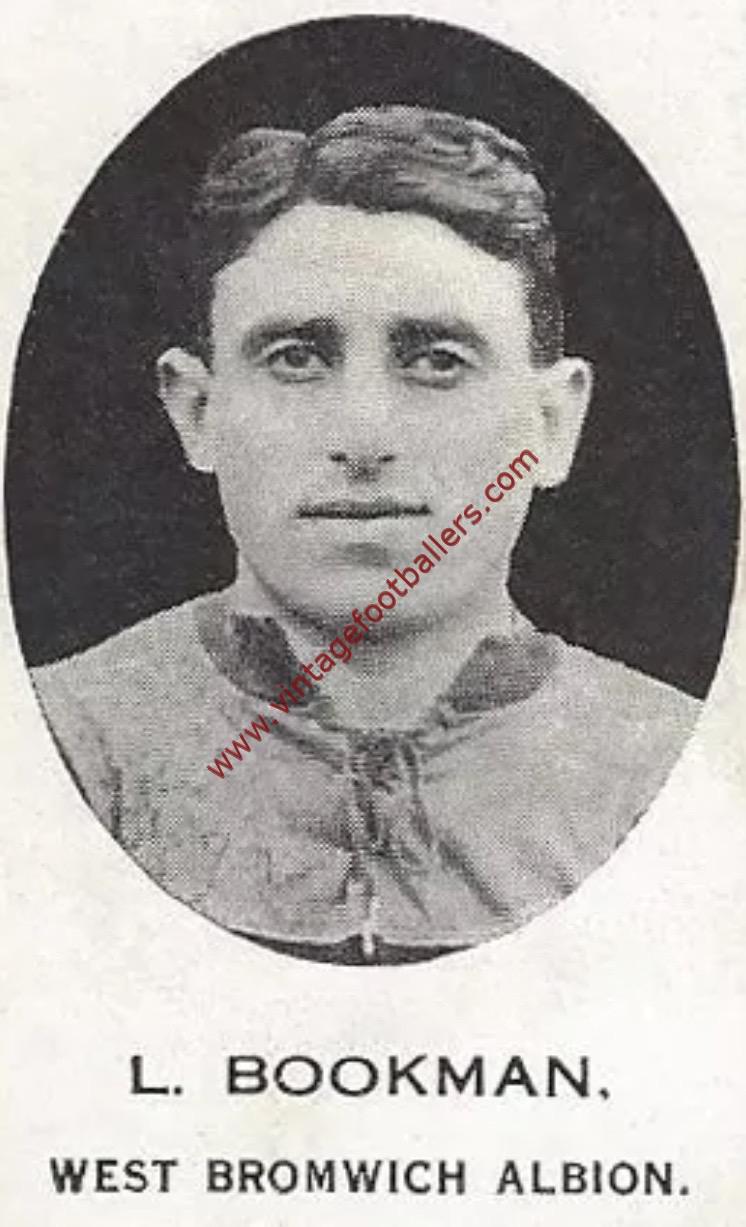 The following season Bookman was transferred to West Bromwich Albion, making 16 appearances and scoring once before football was suspended in May 1915 due to the onset of the First World War. During the War he returned to Ireland and played for Glentoran and Shelbourne.