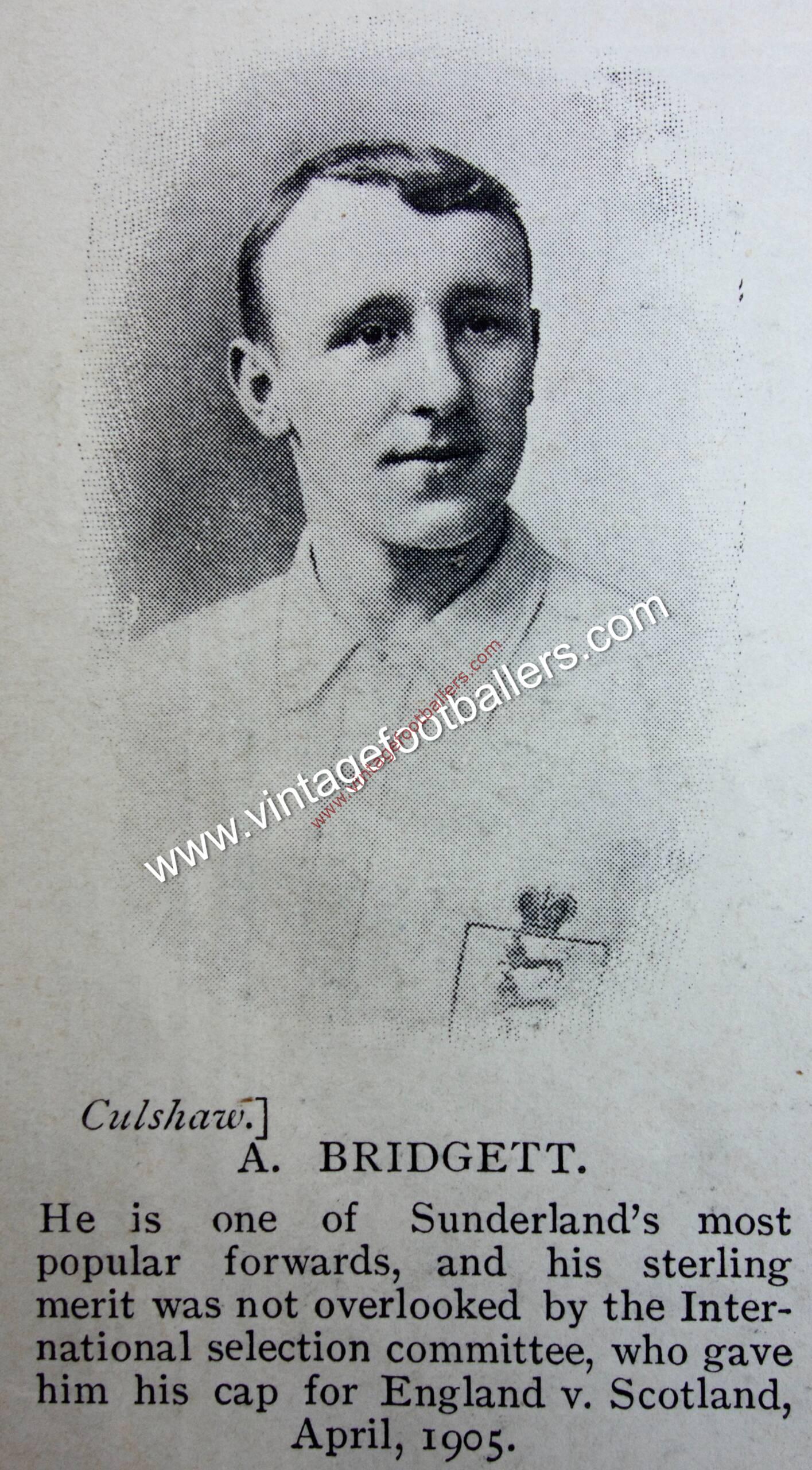 Bridgett was Sunderland’s top scorer in 1905-06 with 17 goals as they finished in 14th place. The following season, Bridgett was again Sunderland’s top scorer with 26 goals in the campaign, but Sunderland were only able to improve their League position to tenth. After 10 seasons with Sunderland, he left the Wearside club to take up management with first North Eastern League club South Shields as player-manager in July 1912 for ÂŁ175. managing them both sides of the First World War and leading them to successive North Eastern League Championships in 1913-14 and 1914-15.