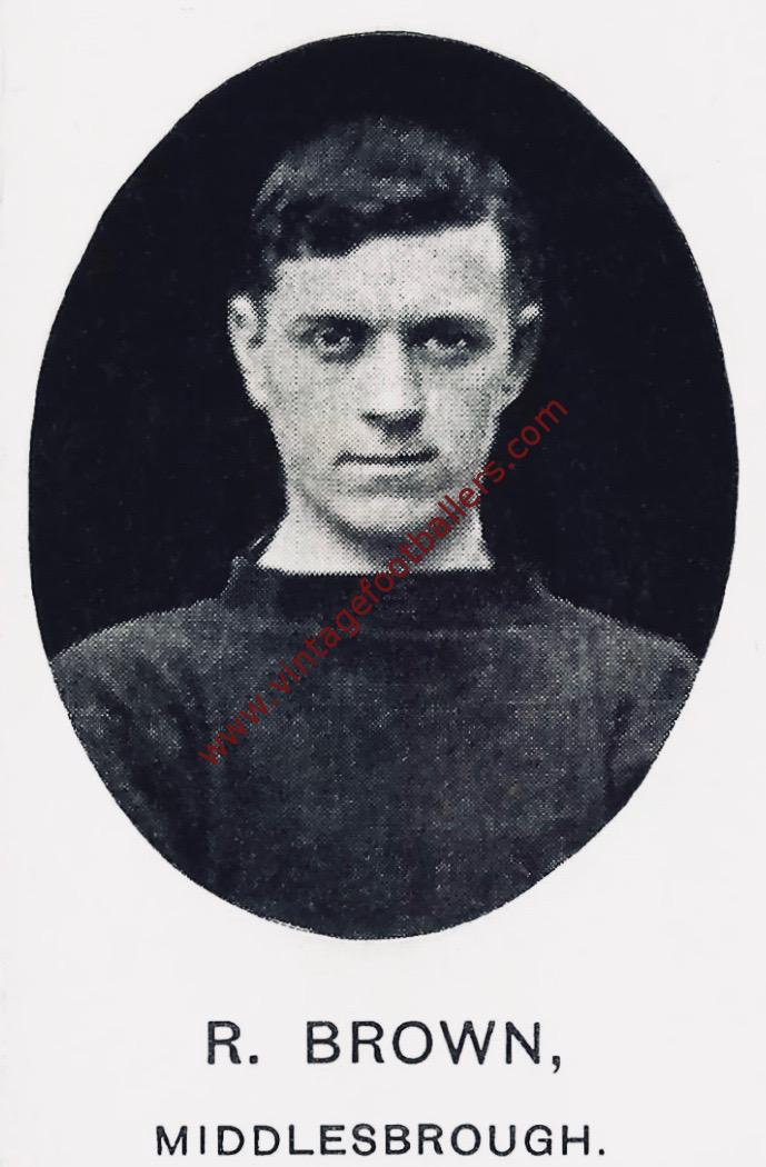 South Bank, Middlesbrough born right back Bobby Brown began his football career with South Bank before joining First Division club Middlesbrough in 1906, making his Football League debut at April in 1907. After 5 matches at the end of the season, Brown featured in a further 21 matches for ‘Boro between September 1907 and January 1908 as Middlesbrough finished sixth in the First Division, when he lost his place after an FA Cup defeat at Notts County. He then joined Bristol City in 1908 but made only 3 appearances in early 1909, before later in the year returning to Cleveland where he joined non league Warrenby Athletic.