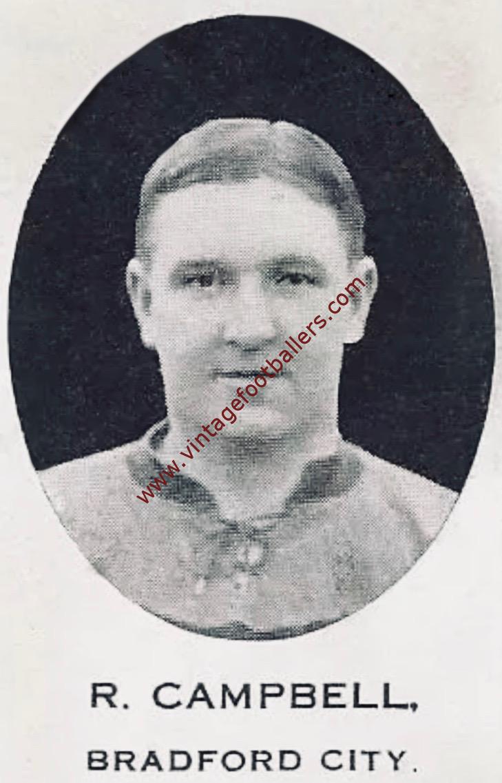 Born in Lugar, Ayrshire right back Bob Campbell started his football career in 1897 with junior clubs Lugar Boswell and Craigston Strollers before signing with Partick Thistle in 1898, with whom he won a Scottish League representative honour when selected against The Irish League in February 1903, before moving to Glasgow Rangers later in 1903. He played for Rangers until 1905, making nine appearances and scoring once before he moved to England and joined Southern League Millwall Athletic.