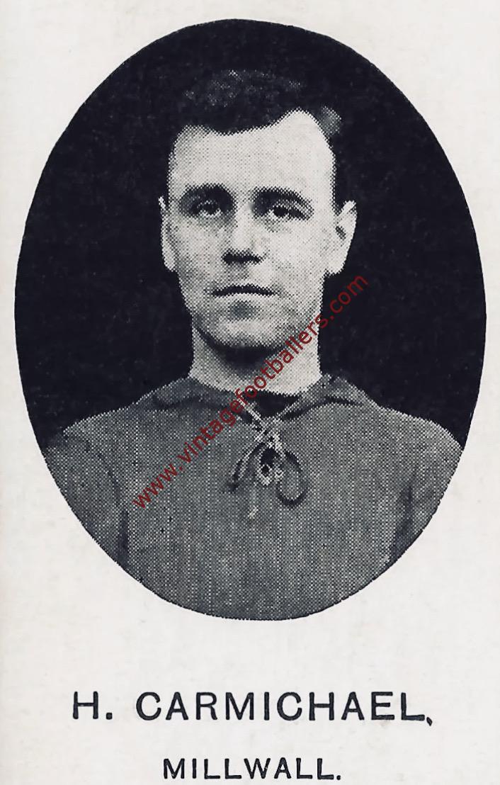 He made a further 19 appearances for The Mariners in their 1907-08 campaign but after he lost his place in the New Year to Walter Scott, he played only four matches in February 1908 before joining Southern League Millwall Athletic in May 1908. Carmichael stayed three seasons at The Den before a move to North Eastern League Hartlepools United in 1911, subsequently finishing his career with The Monkey Hangers before the First World War.