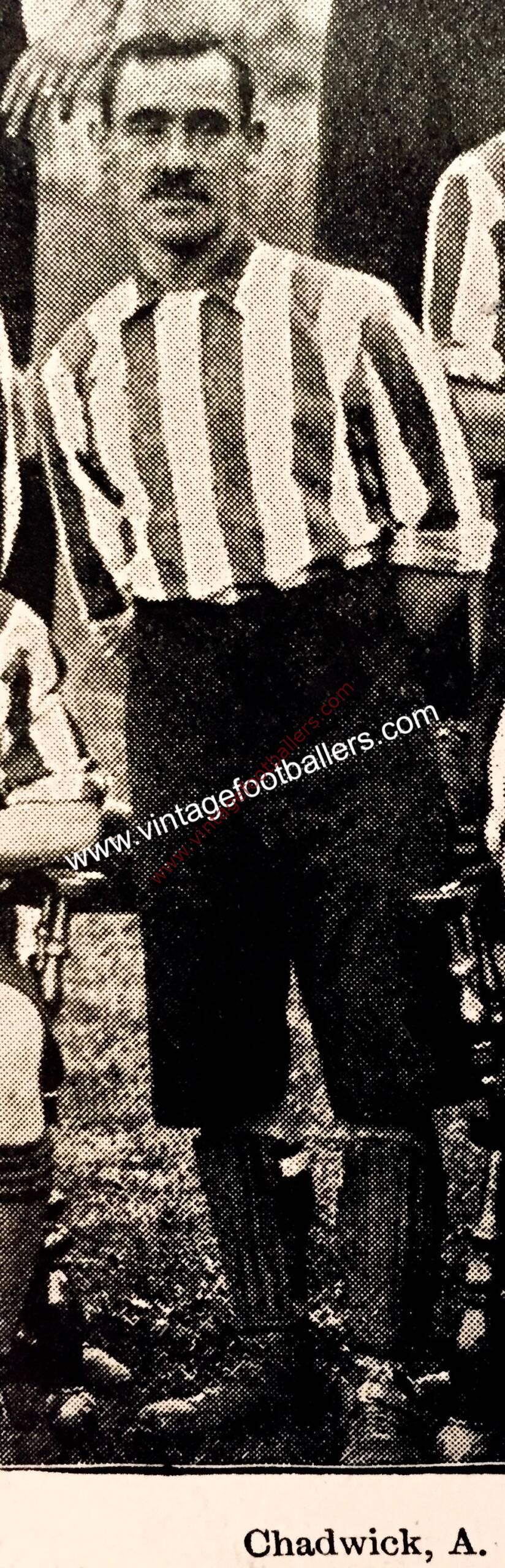 In August 1900 he moved to Southern League club Southampton, where he was re-united with his former Everton left wing colleague Alf Milward. Chadwick and Milward’s partnership contributed 26 goals (14 and 12, respectively) as Southampton once again took the Southern League Championship. In the following season, Southampton reached the FA Cup Final, which they lost in a replay to Sheffield United at The Crystal Palace, Chadwick’s third Cup Final defeat.