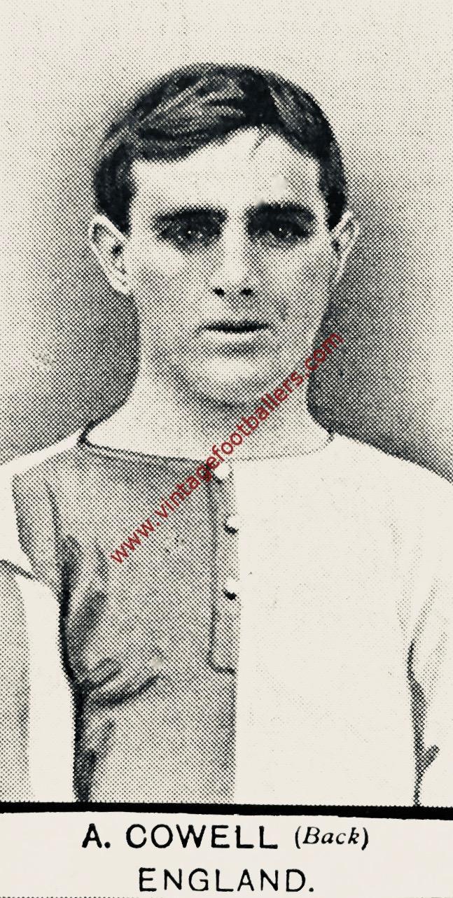 Lower Darwen born full back Arthur Cowell started playing football for Blackburn St Peter’s in 1903 before joining Nelson in 1904. From Nelson he signed for Blackburn Rovers the following year making his Football League debut at Notts County in September 1905, starting a 32 year association with the Ewood Park club. He played both sides of World War One for Blackburn winning two League Championships with them in 1912 and 1914. He also won a single England cap playing in a 1-1 draw against Ireland at The Solitude Ground, Belfast in February 1910. He also played once for The Football League in an 8-1 win over The Irish League at Boundary Park, Oldham in October 1909.