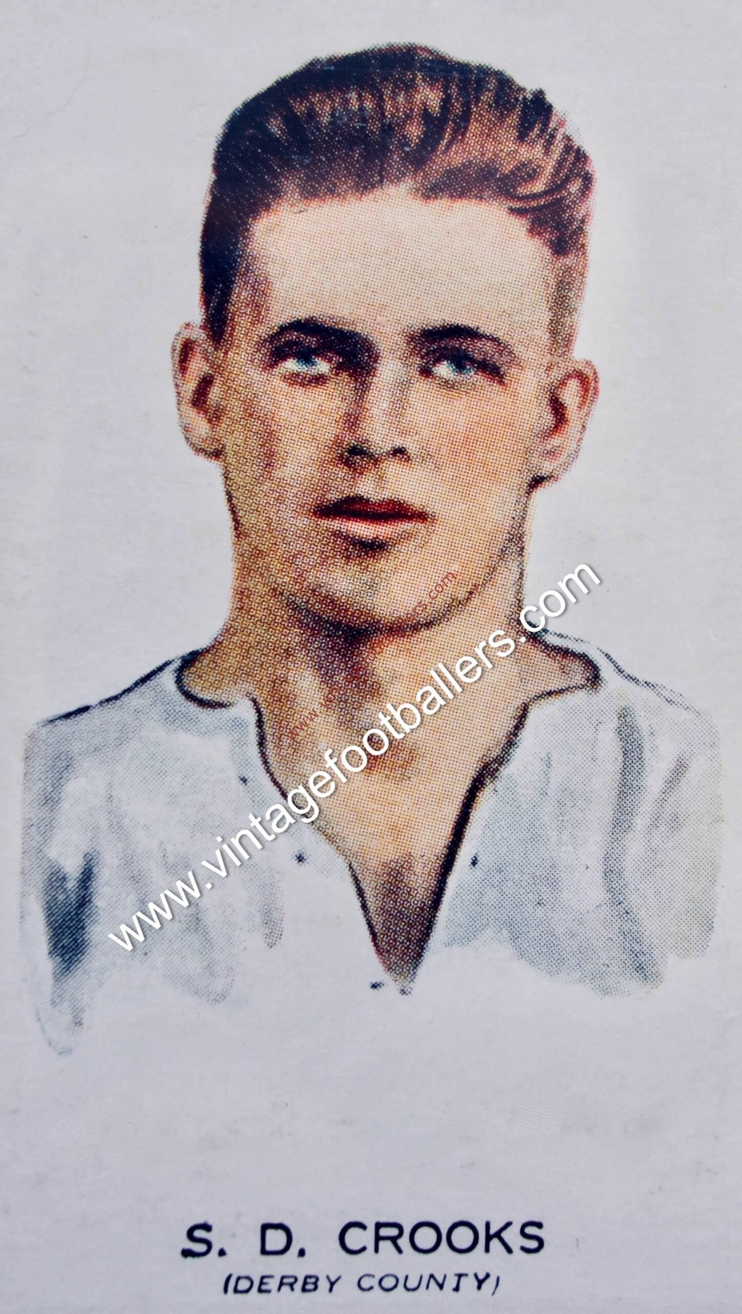After only 16 games and 4 goals, Derby County signed him for £300 in April 1927, Crooks having been spotted by Derby manager George Jobey, making his debut for The Rams against Leicester City that September, and he would be pivotal to the excellent Derby County teams of the next few years, when they were twice League Championship runners up in 1930 and 1936.