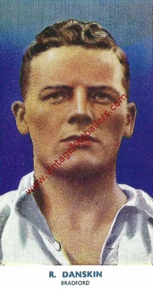 Scotswood, Newcastle born centre half Bob Danskin played local football in the North East with Scotswood in 1926, Throckley Welfare in 1927 and Wallsend United in 1928 before joining First Division Leeds United in May 1929, making his Football League debut exactly two years later against Derby County as Leeds were relegated in 1931. He played another 5 games the following season for the Elland Road club, scoring against Swansea Town in January 1932, before joining Bradford Park Avenue in December 1932. His association with Park Avenue lasted both sides of the Second World War, always in the Second Division, becoming club captain, and by the time he played his last match against Millwall in September 1947 already aged 39 he had scored 6 goals in 282 appearances for them.