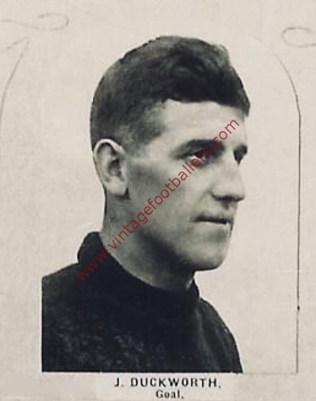Blackburn, Lancashire born goalkeeper Joe Duckworth started his football career prior to the First World War with Lancashire Combination club Accrington Stanley in 1914, but after the War he joined First Division club Blackburn Rovers, for whom he made his Football League debut at Bolton Wanderers in December 1919, playing 7 times for Rovers as understudy to Alfred Robinson and Ronnie Sewell before joining newly elected Third Division club Aberdare Athletic, where he initially shared goalkeeping duties with Edward Leahy, playing 89 times over a three year period before joining Reading in the summer of 1924.