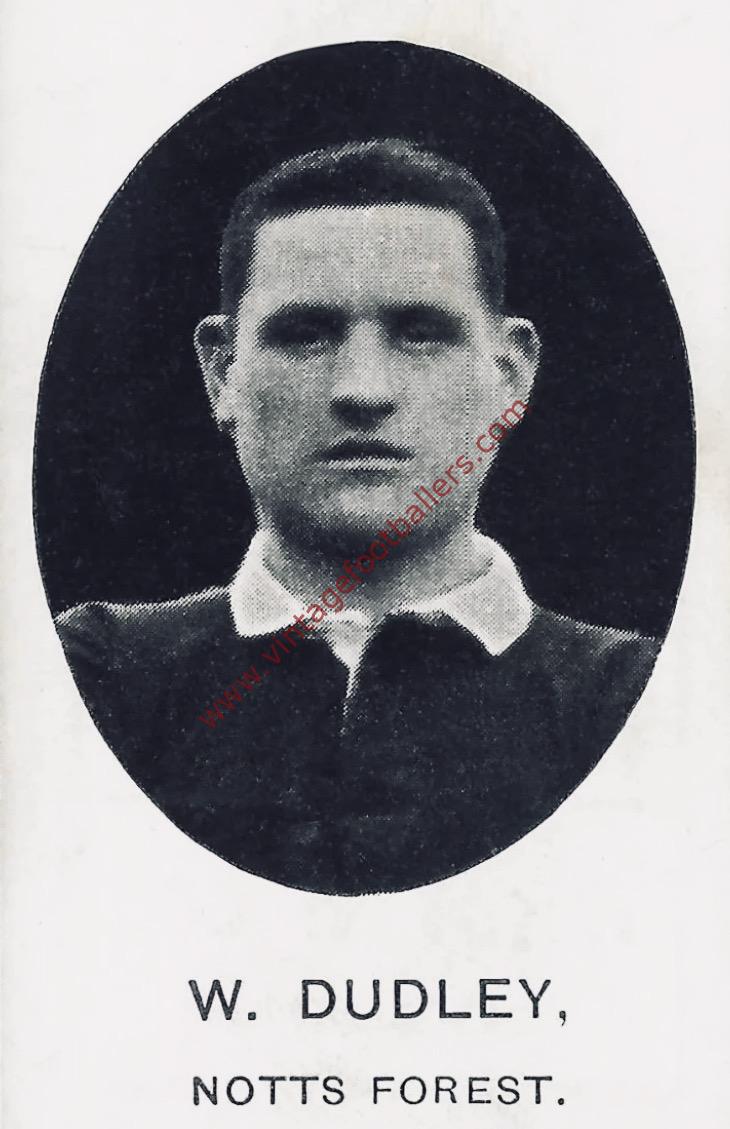 He was again ever present in 1908-09 and was a regular until March 1913. He played his last match for Nottingham Forest in November 1913 and over twelve seasons made a total of 299 appearances, never scoring, leaving the club in 1914 to join firstly Mansfield Mechanics for a brief spell and he then played for Doncaster Rovers before the onset of the First World War brought his career to an end. During the First World War, Dudley served with The Royal Garrison Artillery, seeing action at Vimy Ridge, Messines, Ypres and Passchendaele. He was awarded the Military Medal in 1918.