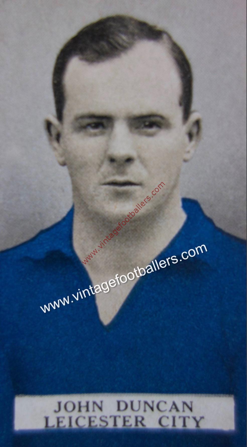 Described as “an indelible Leicester City great”, Duncan made his Football League debut at Stockport County in August 1922, missing only one match in a debut season that produced 22 goals, and he holds the (joint) club record at Leicester for the most goals in a single game, scoring six goals in a 7-0 victory over Port Vale on Christmas Day 1924, a game in which Arthur Chandler, the other joint record holder, scored the first goal, scoring a career best 34 goals that season as The Foxes won the Second Division Championship, albeit Chandler outscored him with 38 strikes. Besides his six goal feat he scored two further hat-tricks for Leicester while they were still a Second Division club against Bristol City in March 1924 and Fulham in March 1925.