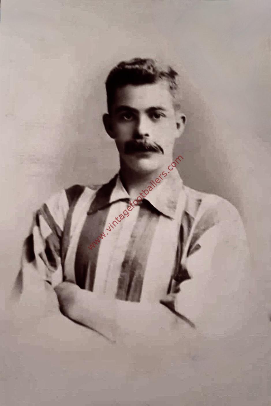 Right half Billy Dunlop, who also often played at centre half, was born in Annbank, South Ayrshire, and began his football career playing for his hometown club Annbank in 1892 before coming to England to sign for First Division club Sunderland in January 1893. He made his Football League debut on 28th January 1893 in a 4-2 home win against The Wednesday, and played four more matches at the end of the 1892-93 season once the League Championship was secured. From the following season onwards, Dunlop was a regular in the first team, contributing to their runners-up position in 1894 and a further League Championship triumph in the 1894-95 season, making 148 appearances over seven seasons at Newcastle Road and (in his final season) Roker Park, scoring 6 goals for The Wearsiders.