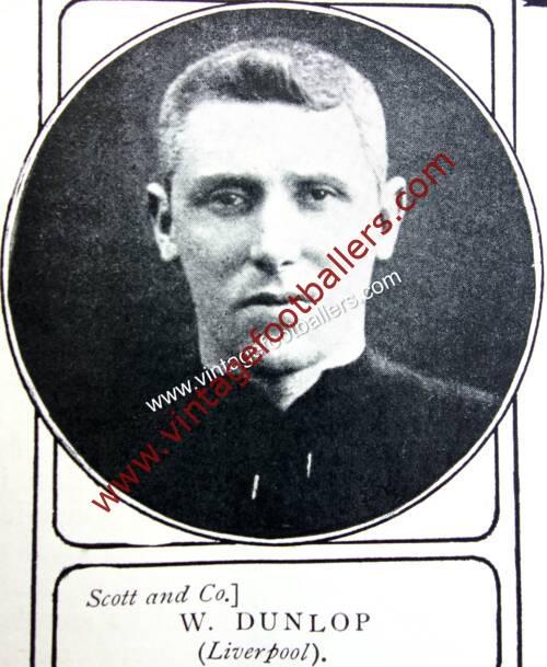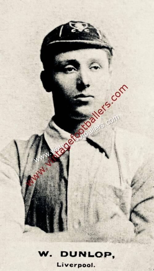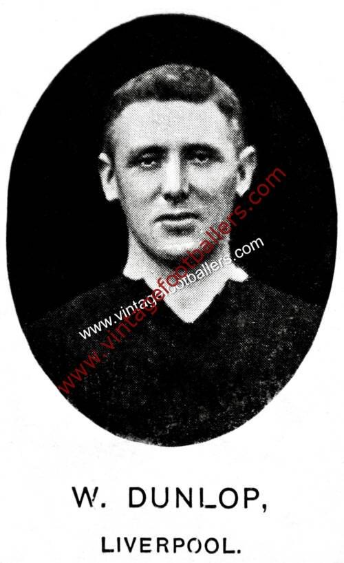 Left back Billy Dunlop was born in Hurlford, Ayrshire, played junior football for Sandyford in 1889 and Hurlford in 1890, before joining Annbank in 1891, Kilmarnock in 1892 and Abercorn in 1893, from where he was signed by Liverpool managers John McKenna and William Barclay in January 1895 for £35. He made his Football League debut in a 3-2 home defeat at the hands of Sunderland on the 25th March 1895, a season which saw Liverpool relegated from the First Division.