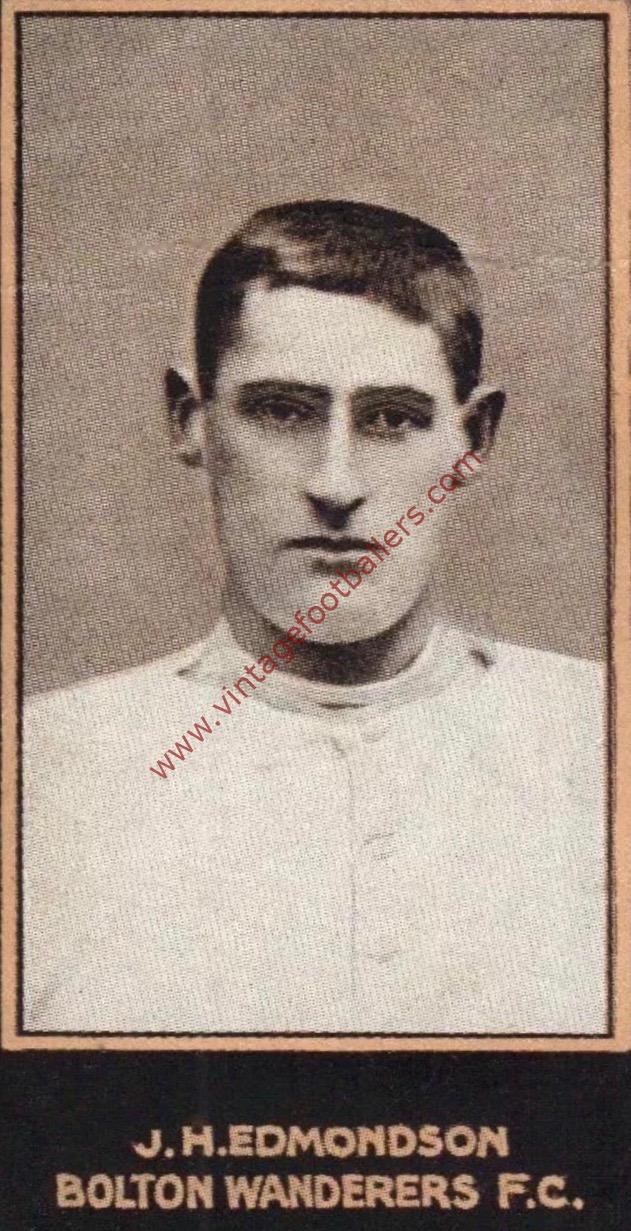 Edmondson was ever present as Bolton won the Second Division Championship in 1908-09 and although immediately relegated they bounced back to the top flight immediately as Second Division runners up in 1911. He continued to play for The Trotters until the end of the 1914-15 season, indeed his final match of 259 appearances for Bolton was the 2-1 1915 FA Cup semi-final defeat to eventual winners Sheffield United at Ewood Park, however the onset of the First World War which forced the suspension of peacetime football in May 1915 effectively ended his career.