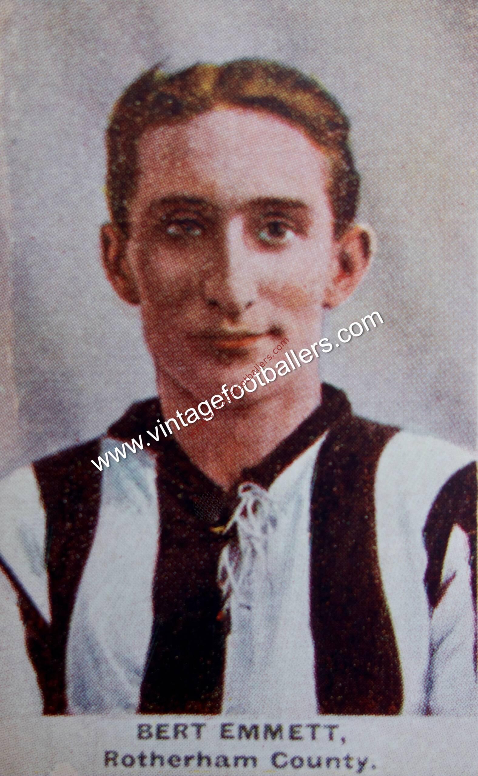 After the end of the First World War, Rotherham born wing half Herbert “Bert” Emmett joined Midland League Rotherham Town but soon transferred to cross town Second Division rivals Rotherham County in the 1920 close season, making his Football League debut against Coventry City in August 1920. Initially a fringe player, by November 1921 he was a regular in their first team, and despite County’s relegation to the Third Division (North) in 1923, he continued to play for the club.