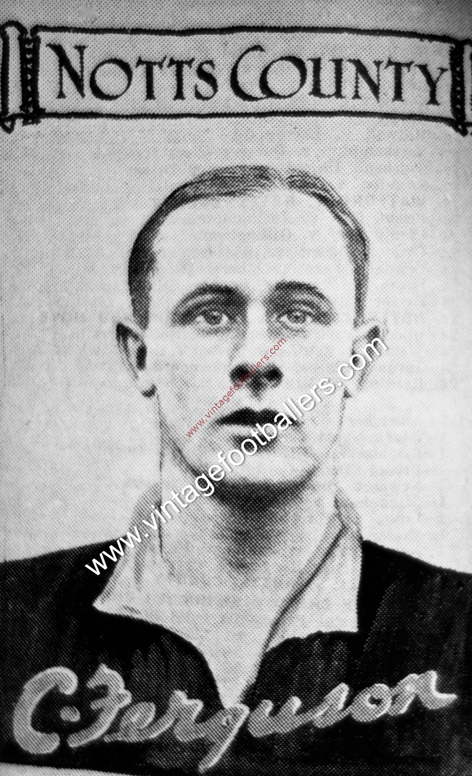 His single season spell at Meadow Lane saw him score twice on his debut against Exeter City that August, but Notts County narrowly missed out on promotion finishing runners up in the Third Division (South), whereupon after 10 goals in 25 appearances Ferguson was signed by Second Division Luton Town. He again scored on his Luton Town debut, at Southampton in a 6-3 win, and scored 12 goals in 24 appearances in his first season, but only once in 9 appearances in 1938-39, before returning to Scotland that summer to join Aberdeen.