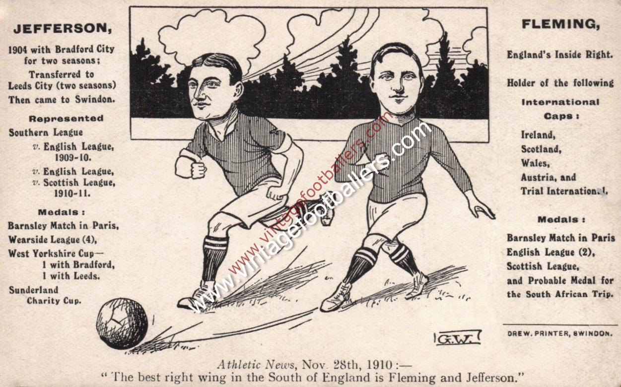 Over the next 17 years he became a Swindon Town legend scoring 204 times in 336 games for Swindon and if not for World War One his career may have been even more fruitful, eventually retiring in 1924. During his time at Swindon, the team won the Southern League championship twice in 1911 and 1914, and also reached the FA Cup semi-finals twice, in 1910 and 1912, their only two semi-final appearances, where they lost to eventual winners Newcastle United at White Hart Lane in 1910. In the second semi final, versus Barnsley in 1912, Fleming was obviously seen as the dangerman, and he was singled out for some particularly rough treatment. The injuries he sustained in the 0-0 draw at Stamford Bridge not only ruled him out of their 1-0 replay defeat at Meadow Lane a few days later but kept him out for 10 months. In 1914 it was said of him “No man has had more to do with the rise of Swindon than Harold Fleming”.