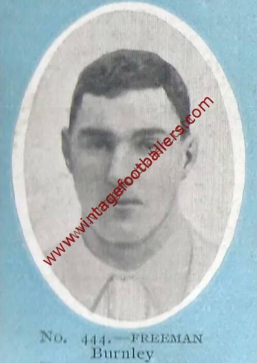 After the War he contributed 12 goals in Burnley’s League runners up finish in 1919-20, although the following year when they won the League Championship he played only 3 times. Freeman was three times top scorer in a League season with 38 goals in 1908-09, 32 in 1911-12 and 21 in 1912-13.