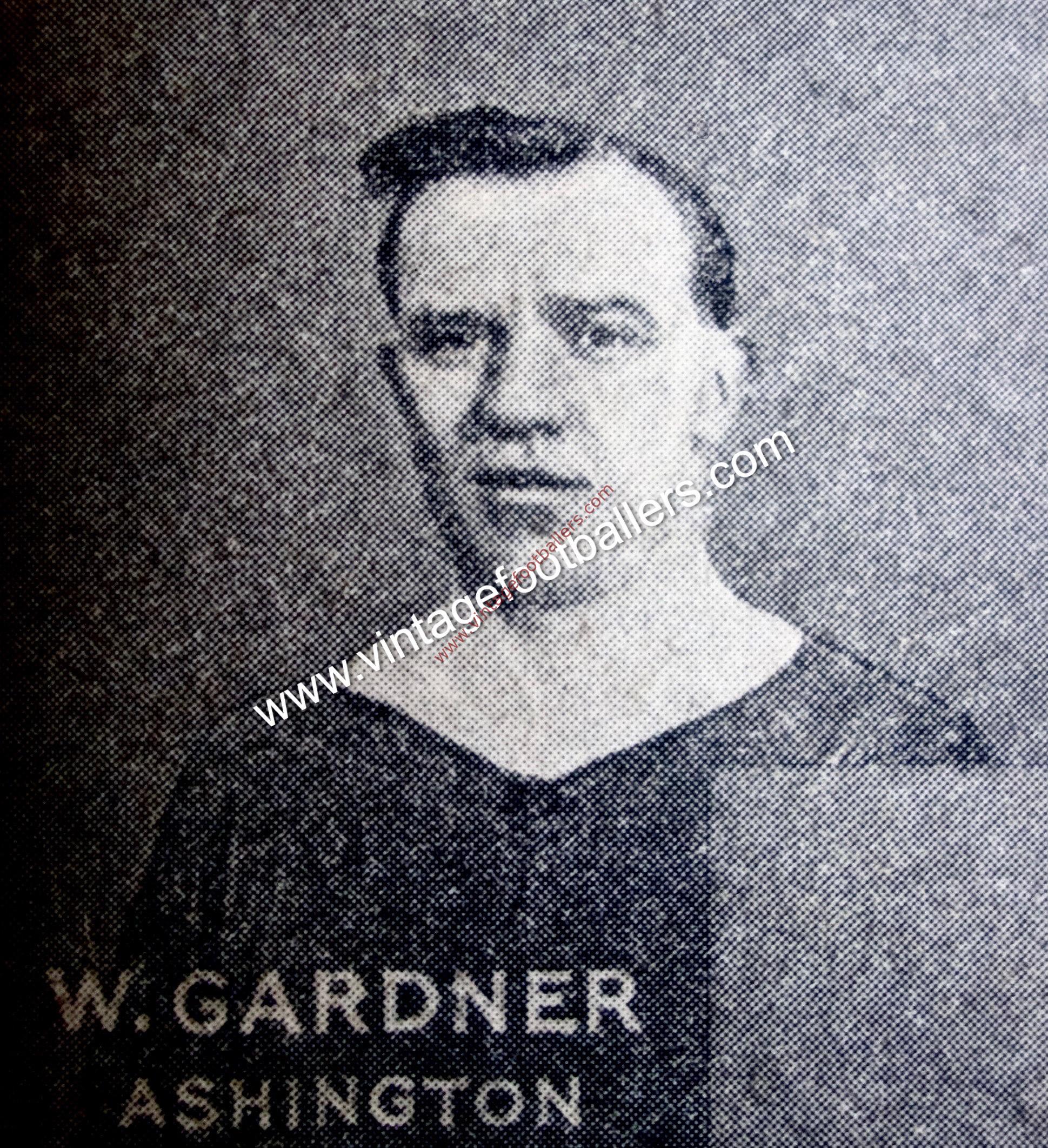 Langley Moor, County Durham born inside forward Bill Gardner had an extensive junior football career between 1908 and the First World War, playing for amongst others Durham City in 1911, Crook Town in 1912 and Bishop Auckland in 1913, but after the First World War he made his entrance to senior football when he signed for First Division Derby County in August 1920, making his Football League debut that August against Tottenham Hotspur, and scoring his only League goal, in 5 appearances, 2 weeks later in a 4-2 home defeat to Everton.