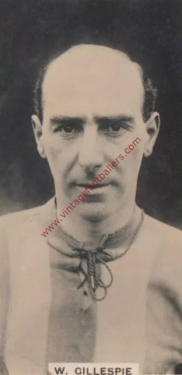 In his third season with Sheffield United he was part of The Blades’ team that narrowly lost the 1914 FA Cup semi final, 1-0 in a replay to eventual winners Burnley at Goodison Park. A broken leg in September 1914 received in the first game of the season against Sunderland prevented him from playing all season and he unluckily missed the 1915 FA Cup Final win over Chelsea, the so called “Khaki Cup Final” immediately before the onset of the First World War forced the suspension of peacetime football. During the War Gillespie played initially frequently for Sheffield United in wartime league football and then only occasionally as he served as a gunner in the Army, and it was in this time that he lost most of his hair.