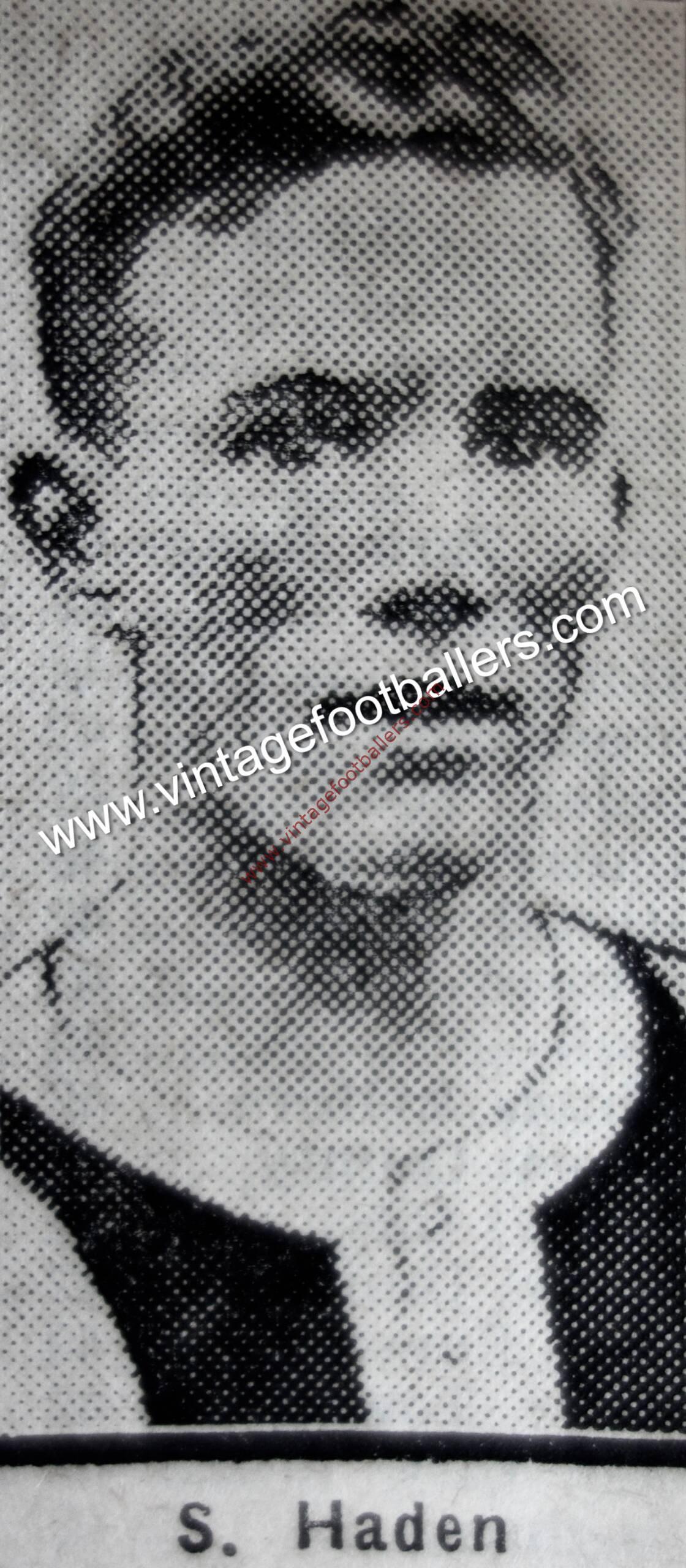 Royston, Yorkshire born outside left Sam Haden joined Midland League club Castleford Town in 1921 and from there was signed by First Division club Arsenal in the 1923 close season, making his Football League debut at West Ham United that August. He played for The Gunners under both Leslie Knighton and Herbert Chapman, and was a regular in his first season and then from February 1925. However on 3rd February 1926 Haden broke his leg in the home match with Burnley at Highbury which Arsenal lost 2-1. Haden was out of the team for the season.