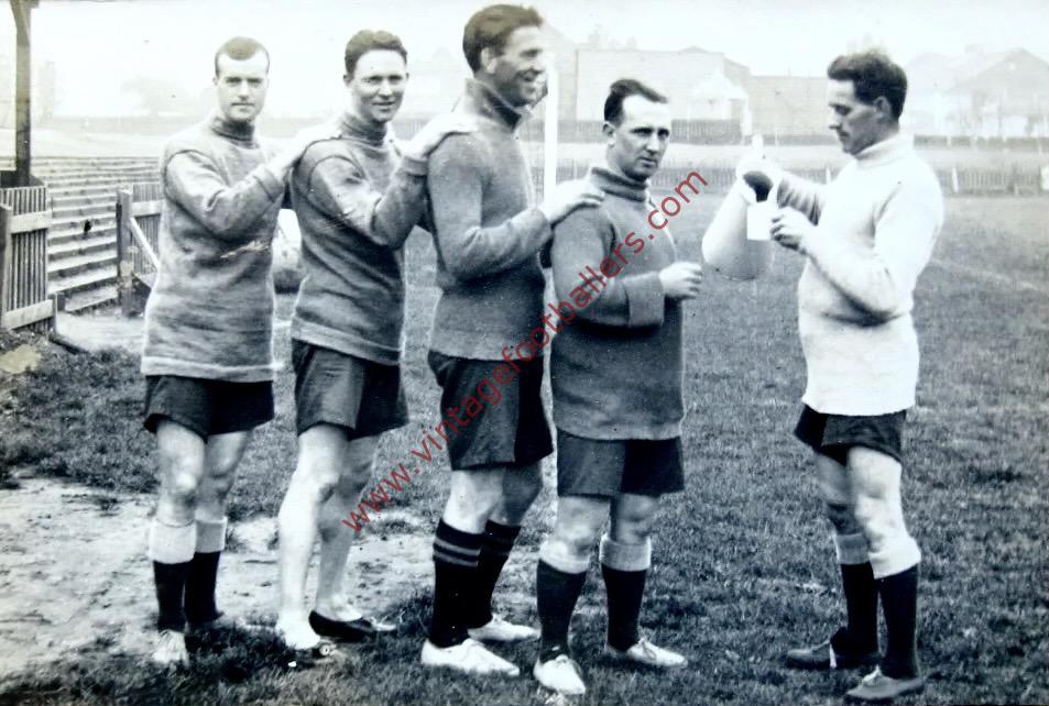 NB in the photograph, Joe Hall is second right with (l-r) Fred Lievesley, George Davies and Jimmy Evans.