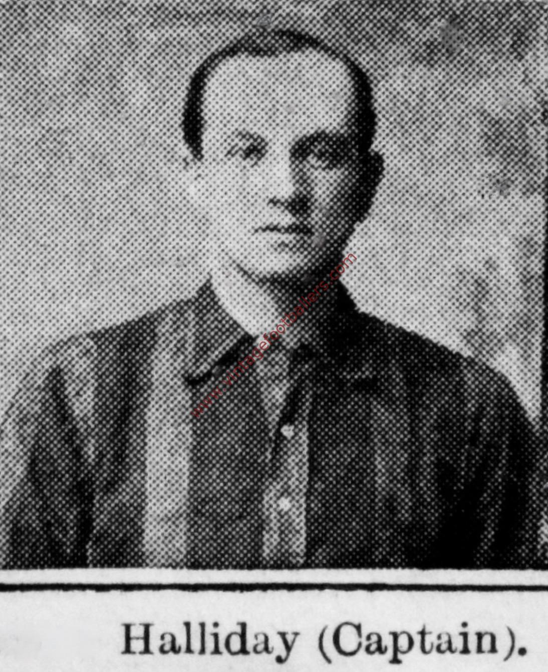Chester, Cheshire born left back Fred Halliday began his football career as an amateur at local club Combination club Chester in the late 1890’s. He transferred to First Division club Liverpool in April 1898, but failed to make a first team appearance, joining Lancashire League club Crewe Alexandra in 1899. He joined Everton in 1900 and spent 1900-01 at Goodison Park without making their first eleven. Signing for First Division Bolton Wanderers in the 1901 close season, he made his Football League debut at Blackburn Rovers that December, playing 18 times in his debut season, but made only 12 more appearances in 1902-03, a season that ended in relegation for The Trotters.