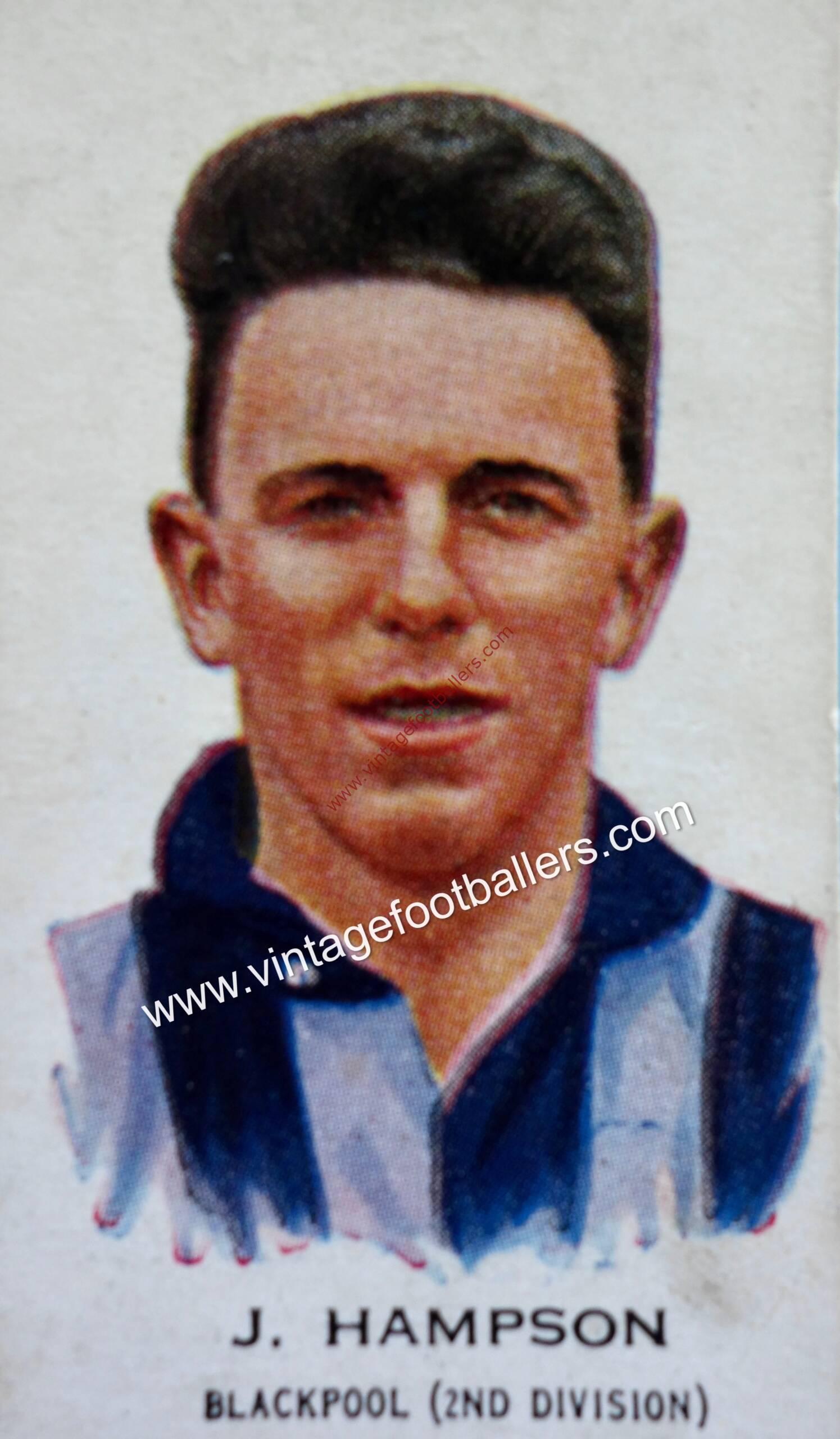 Despite his consistent supply of goals Blackpool struggled in the First Division finishing 20th two seasons running in 1931 and 1932 and then bottom in 1933. His form suffered until a resurgence in partnership with Bobby Finan that saw him ever present and score 16 times in 1936-37 and Blackpool were again promoted to the First Division. The following season ended tragically early for Hampson, when in January 1938 two days after an FA Cup tie, while on a fishing trip, his boat was in collision with another vessel and he was knocked overboard. He drowned aged 31, and his body was never recovered.