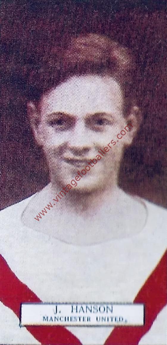 Manchester born inside forward Jimmy Hanson began his football career in junior football with Manchester YMCA in 1920 and played for Bradford Parish in 1921 before spending 1922-23 on the books of Stalybridge Celtic, without making an appearance for their first eleven. In 1923 he joined Manchester North End and from there signed for Second Division Manchester United, making his Football League debut against Hull City in November 1924, scoring in a 2-0 win at Old Trafford. Despite this and 2 more goals in each of his two appearances over the next two weeks, he wasn’t seen again in what was United’s promotion season as Second Division Champions.