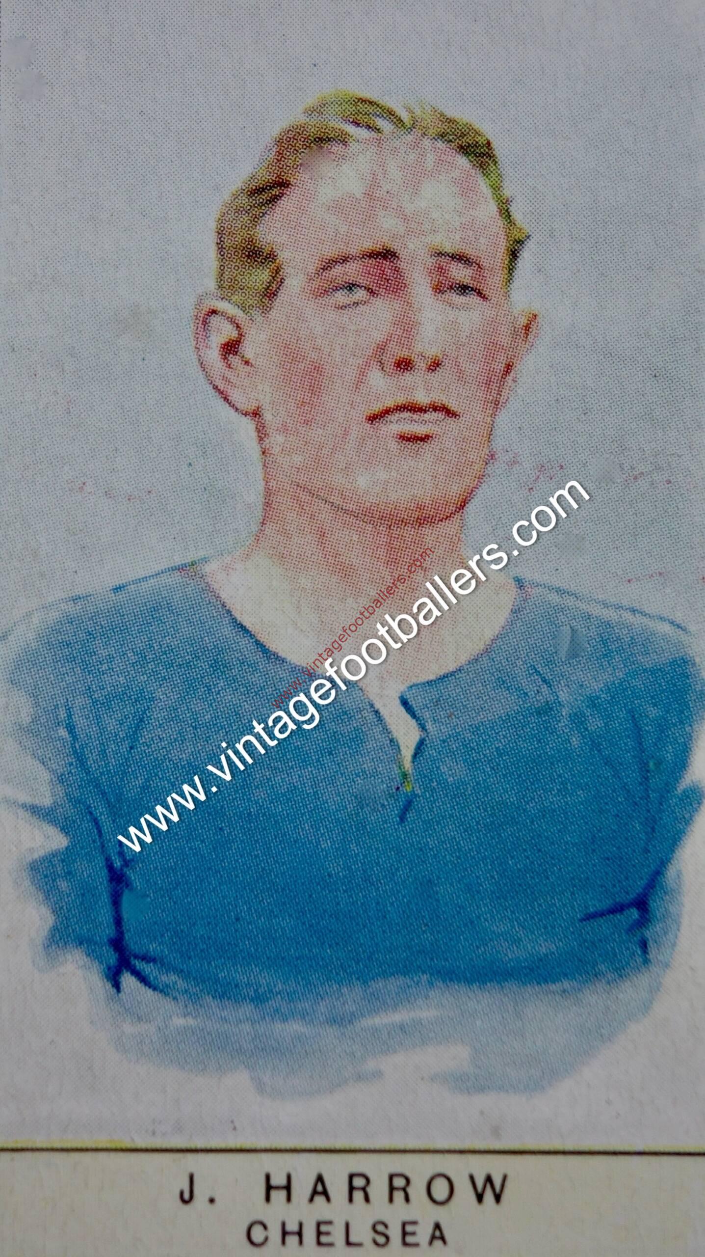 Over the next 15 war interrupted years Harrow played 333 matches for The Pensioners, scoring 5 times, 4 of which were from penalties, his only outfield goal being his first, the only goal in a 1-0 win over Oldham Athletic on Boxing Day 1919. He captained Chelsea for many years and was captain in their losing 1915 FA Cup Final line up. He was the first Chelsea player to play 300 matches for the club, a milestone he reached in November 1924.