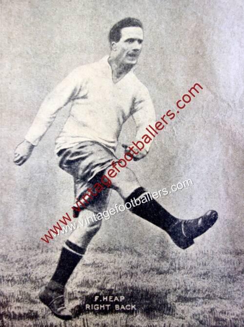 Ashton-in-Ribble, Lancashire born right back Fred Heap had played for Lancashire Combination club Rochdale in 1914 prior to the First World War, during which he continued to play wartime football with ‘Dale, and after the War he signed for Second Division club Bury in April 1919, making his Football League debut at Stockport County that September. Originally a centre forward, he moved to right half and then quickly established himself as a regular member of their first eleven at right back.