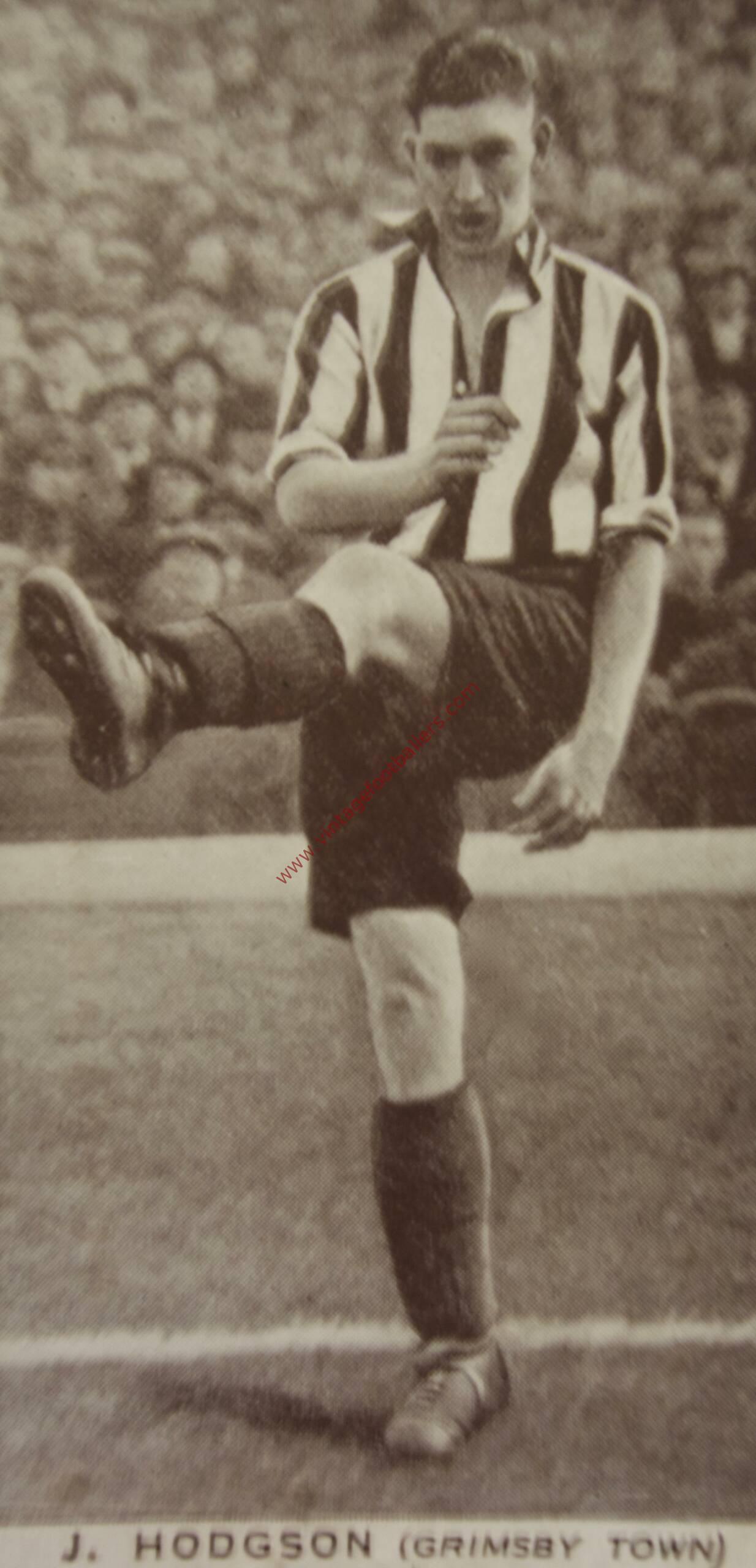 He was a member of Grimsby’s 1936 FA Cup semi final team that lost narrowly to eventual winners Arsenal at Leeds Road, Huddersfield, and their 1939 FA Cup semi final team well beaten by Wolverhampton Wandererers at Old Trafford, before his career was severely interrupted by the outbreak of the Second World War. After the War he returned to Blundell Park and played in the first two peacetime seasons, but during the 1947-48 season in which Grimsby were relegated from the First Division, Hodgson was sold to Doncaster Rovers in January 1948 after 2 goals in 237 appearances for Grimsby.