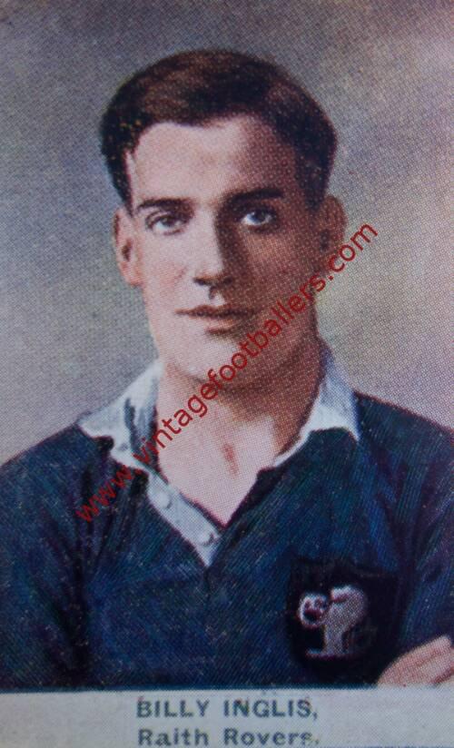 Linktown, Kirkcaldy, Fife born right back Bill Inglis played junior football for Inverkeithing United in 1912 and Kirkcaldy United in 1913 before joining Scottish League club Raith Rovers in 1914. He remained with The Rovers for the next decade, and was part of their 1921-22 team that finished third in the Scottish Championship behind The Old Firm, until in the summer of 1924 when he was signed by Second Division Sheffield Wednesday.