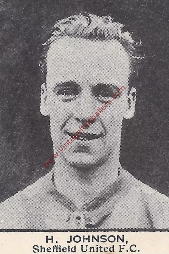 The son of Harry Johnson who had played for Sheffield United and England around the turn of the century, Ecclesfield, Sheffield born centre forward Harry Johnson had served in the Army in the trenches in France, and played for junior club Ecclesfield and in wartime football for Sheffield United, before officially joining First Division Sheffield United in 1919, making his Football League debut in October 1919, scoring in a 2-0 win over Blackburn Rovers. He was a principal goalscorer with Fred Tunstall throughout his twelve seasons at Bramall Lane, scoring 221 goals in 340 matches between 1919 and 1931. He won the FA Cup with Sheffield United in 1925 when they beat Cardiff City in the Final at Wembley, with Fred Tunstall scoring the only goal.
