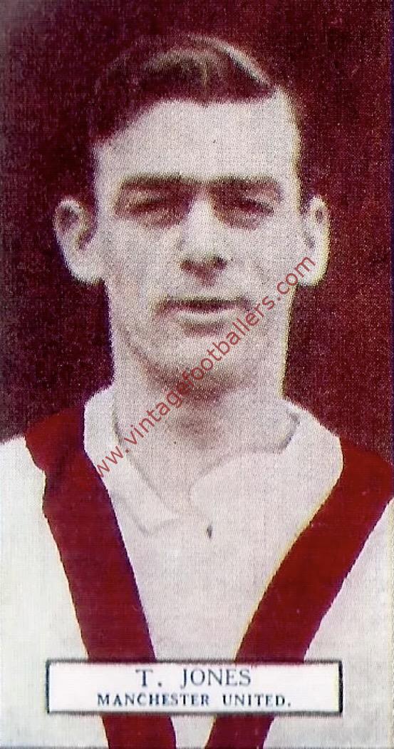 Penycae, Wrexham born left back Tom Jones began his football career with Rhosymedre in 1919, playing for junior clubs Acrefair, Druids, and in 1922 Birmingham & District League side Oswestry Town, from where he was signed by Second Division club Manchester United in 1924, making his Football League debut at Portsmouth that November, helping United to gain promotion that season as Second Division runners up.