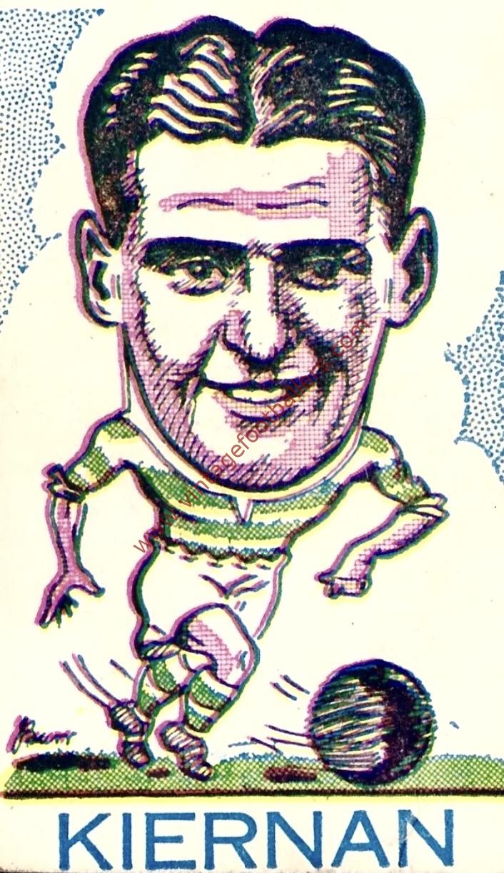 Described as “a clever ball worker and can shoot from all angles”, after 15 goals in 32 matches for Celtic he was sold to Stoke City for £8,500 in September 1947, making his Football League debut against Sheffield United a few days later, After playing just four matches at the start of 1948-49 Kiernan was then sold to Second Division club Luton Town in November 1948 for £6,000 having scored 7 goals in 30 matches for The Potters. With The Hatters Kiernan played three seasons scoring 15 goals in 60 matches before he returned to Scotland in December 1950 with St Mirren, where he scored once in 10 appearances before a move to Barry Town in June 1951. He returned to Albion Rovers in 1952 and scored 3 more goals in 33 further matches before joining Alloa Athletic in 1954, where in a final season he scored 8 goals in 29 matches before his retirement.
