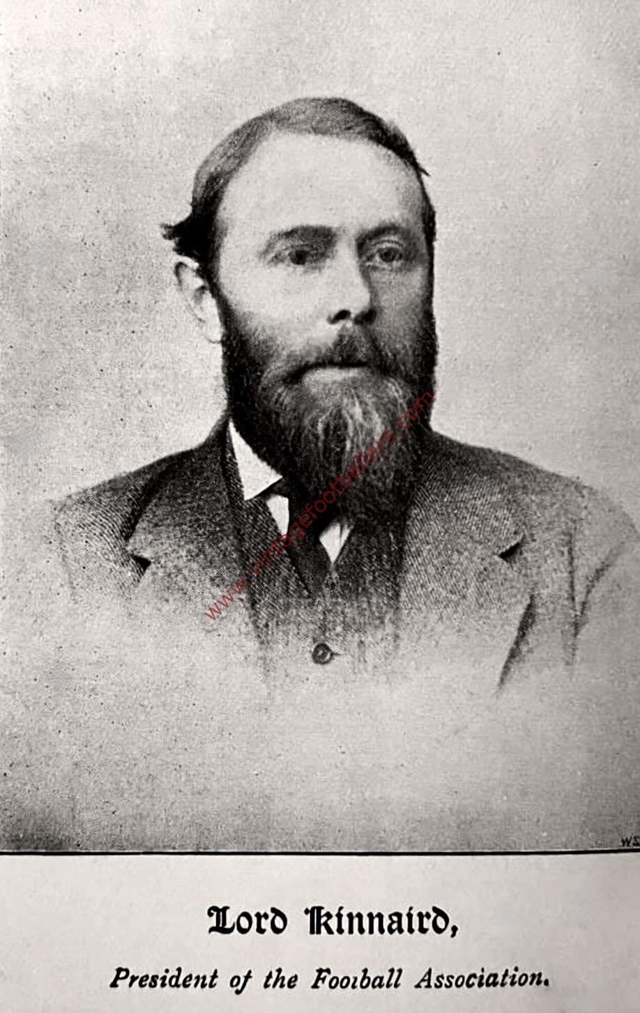 As an administrator, Kinnaird was an FA committee man at the age of 21, in 1868. He became treasurer nine years later and President 13 years after that, replacing Major Francis Marindin in 1890. He was to remain president for the next 33 years, serving alongside long-serving vice-president Charles Crump, until their deaths in 1923, just days before the opening of Wembley Stadium.For his contributions to football and the FA Cup, he was given the FA Cup trophy itself to keep in 1911 when a new trophy was commissioned.