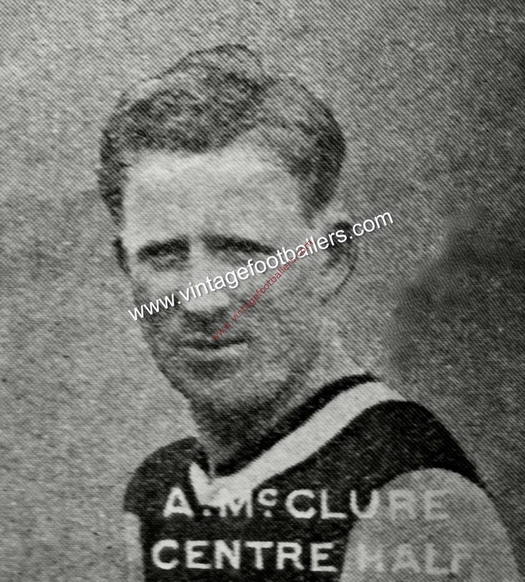 Workington, Cumberland born centre half Alex McClure joined Second Division Birmingham from Grangetown Juniors in 1911, making his Football League debut against Stockport County in January 1912, playing for Birmingham both sides of the First World War, during which he served in the Armed Forces, serving in the Royal Navy and was involved in the Zeebrugge Raid in April 1918, before establishing himself as club captain and linchpin of the first team’s defence. He played for the Football League in a 1-0 victory over the Irish Football League in Belfast in October 1921 and played 40 games as Birmingham won the 1921 Second Division Championship.