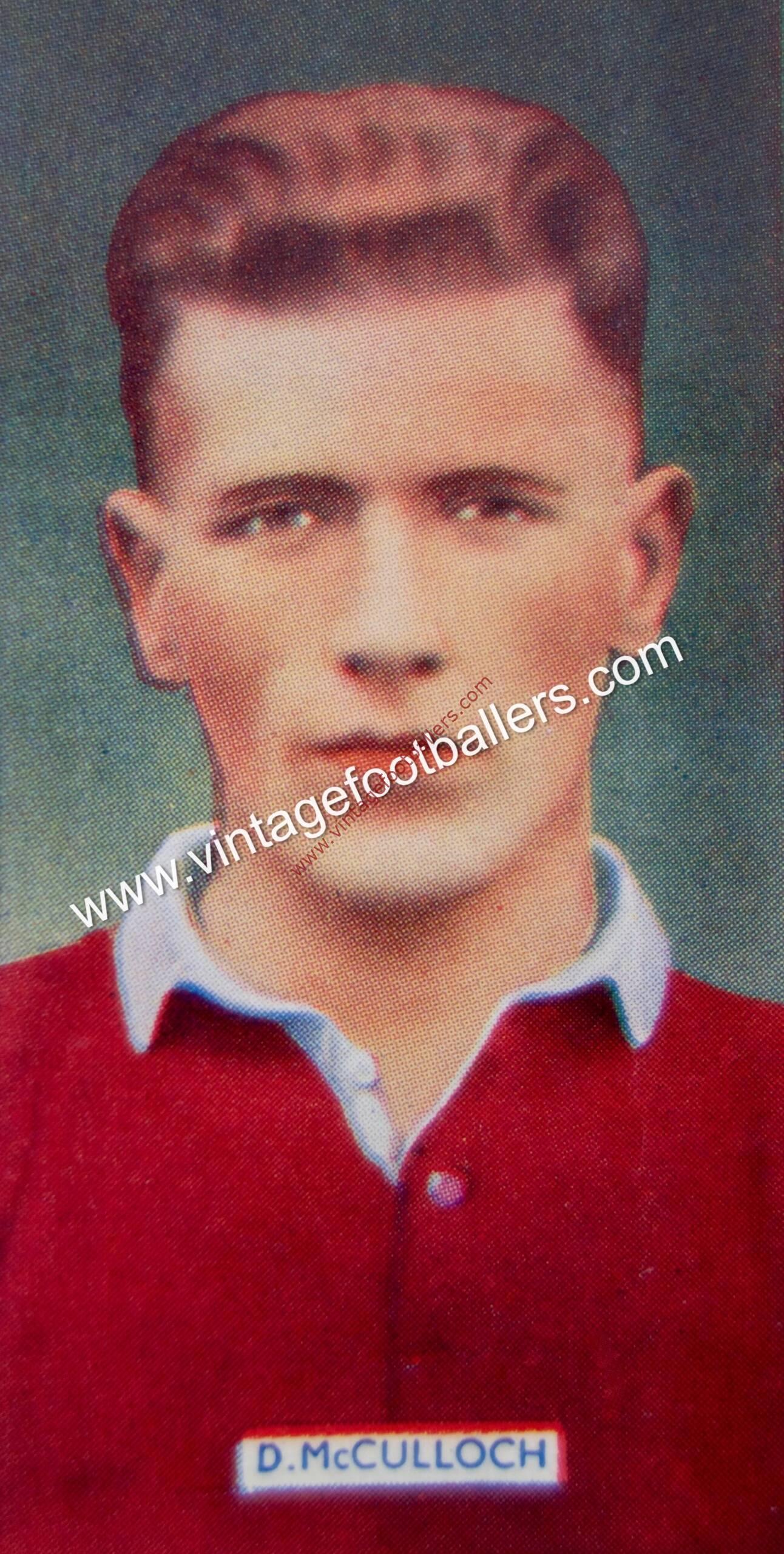 McCulloch’s time with Derby County was disrupted by the Second World War having scored 16 goals in 35 appearances, the War having began while he was at the peak of his abilities and curtailed his international career. During the conflict he “guested” for no less than six clubs, Falkirk, Brentford, Aldershot, Chelsea, Bournemouth & Boscombe Athletic and Swansea Town. At the war’s conclusion he signed for Derby’s rivals Leicester City in August 1946 scoring twice in 4 appearances before finishing his career with non-league Bath City later the same year, and Irish side Waterford in 1949. While with Waterford McCulloch assisted with coaching and in 1951 he returned to Scotland as player-manager of Alloa Athletic, a position he held for one season.