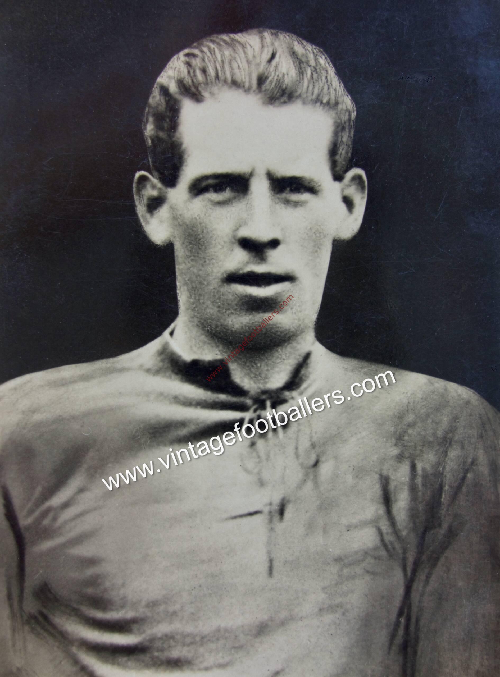 Cleland, Lanarkshire born right half Jock McNab began his football career with Bellshill Athletic and played football while serving in the Army during the First World War before being signed by Liverpool in November 1919, making his Football League debut against Manchester United on New Year’s Day 1920. McNab made only 3 appearances in his first two seasons before breaking into the first team on a regular basis in October 1921, and he was a mainstay of the team that won back to back League Championships in 1921-22 and 1922-23, when he missed only 3 matches during the successful campaign. His reward was Scotland international recognition when he played in a 2-0 victory for the Scots against Wales at Love Street, Paisley in March 1923, although this was to prove his only international cap.