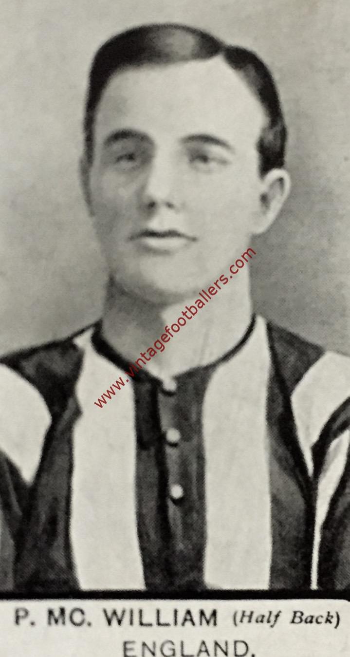 Inverness born left half Peter McWilliam started his playing career at junior club Heatherley in 1898 and joined Inverness Thistle in 1899, remaining with them for a season before joining Albion Rovers in 1900. He returned to Inverness Thistle in 1901 before joining First Division Newcastle United in August 1902, and he was a feature of the very successful period at Newcastle United between 1902 and 1911. Initially a fringe player, he made his Football League debut against Middlesbrough in October 1902, but only played in the first team on 12 occasions during his first two seasons. Breaking into the first team early in the 1904-05 season, he scored 12 goals in 242 games for The Toon, and was part of the 1904-05, 1905-06 and 1908-09 League Championship sides. He was an FA Cup Finalist in 1905, 1906 and 1908, on each occasion Newcastle lost, to Aston Villa, Everton and Wolverhampton Wanderers respectively. In 1910 he finally won an FA Cup winner’s medal as Newcastle beat Barnsley in a replay.
