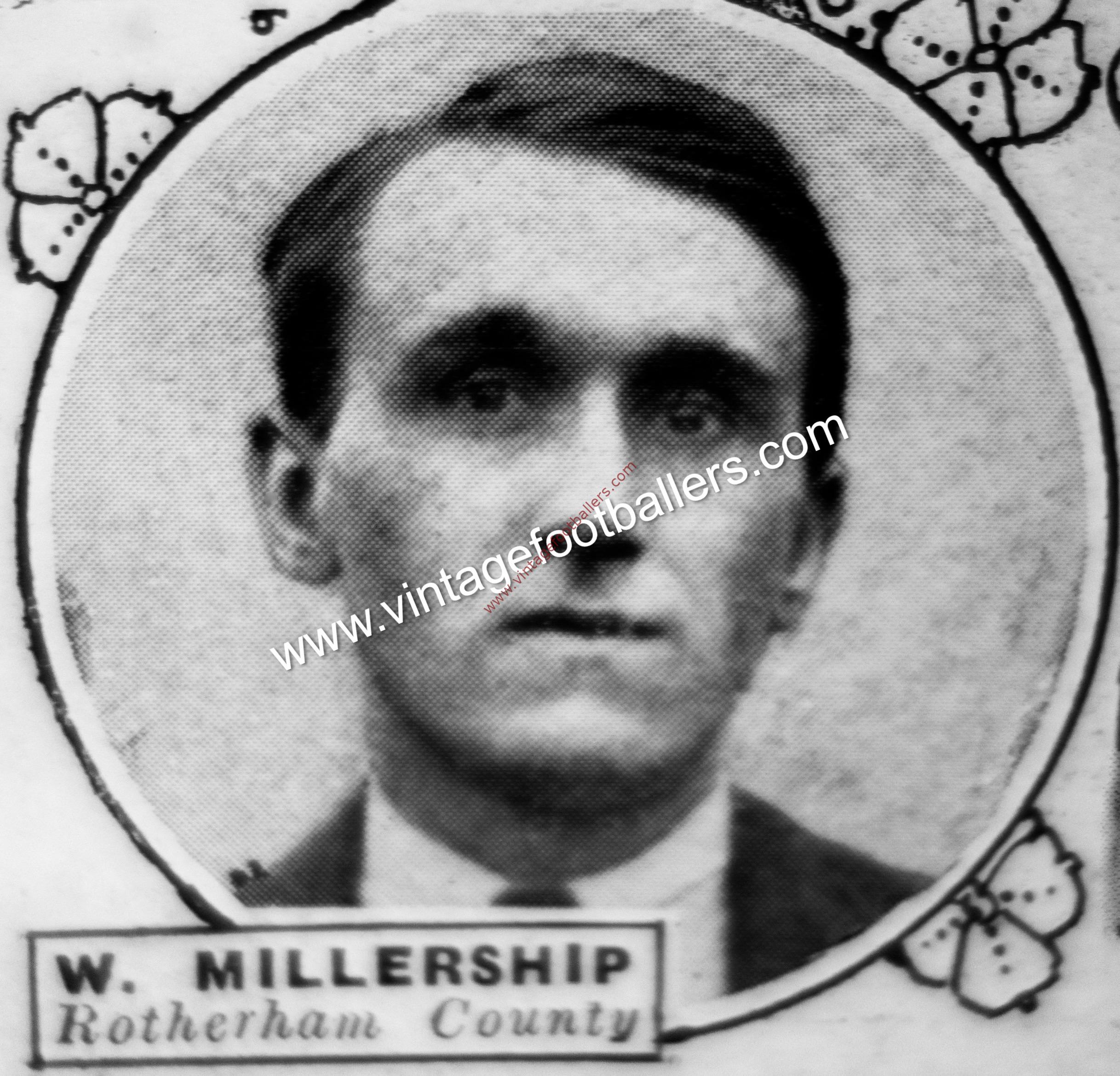 After the War he joined Leeds City in August 1919 and made his debut for his new club against his old club, in a 4-2 defeat at Blackpool on 30th August 1919, playing 8 matches until the club was suspended and had to resign from The Football League. Millership was auctioned to Rotherham County for £1,000, the second highest sum paid for any member of the Leeds City playing staff, and he made his Rotherham debut in a defeat at Stoke at the end of the month. In three seasons he scored 7 goals in 83 appearances for The Millers, before joining Barnsley in September 1922. However he failed to make much impact at Oakwell playing only 5 times in the autumn of 1922 before joining Midland League club Castleford Town in July the following year, his final club before his eventual retirement.