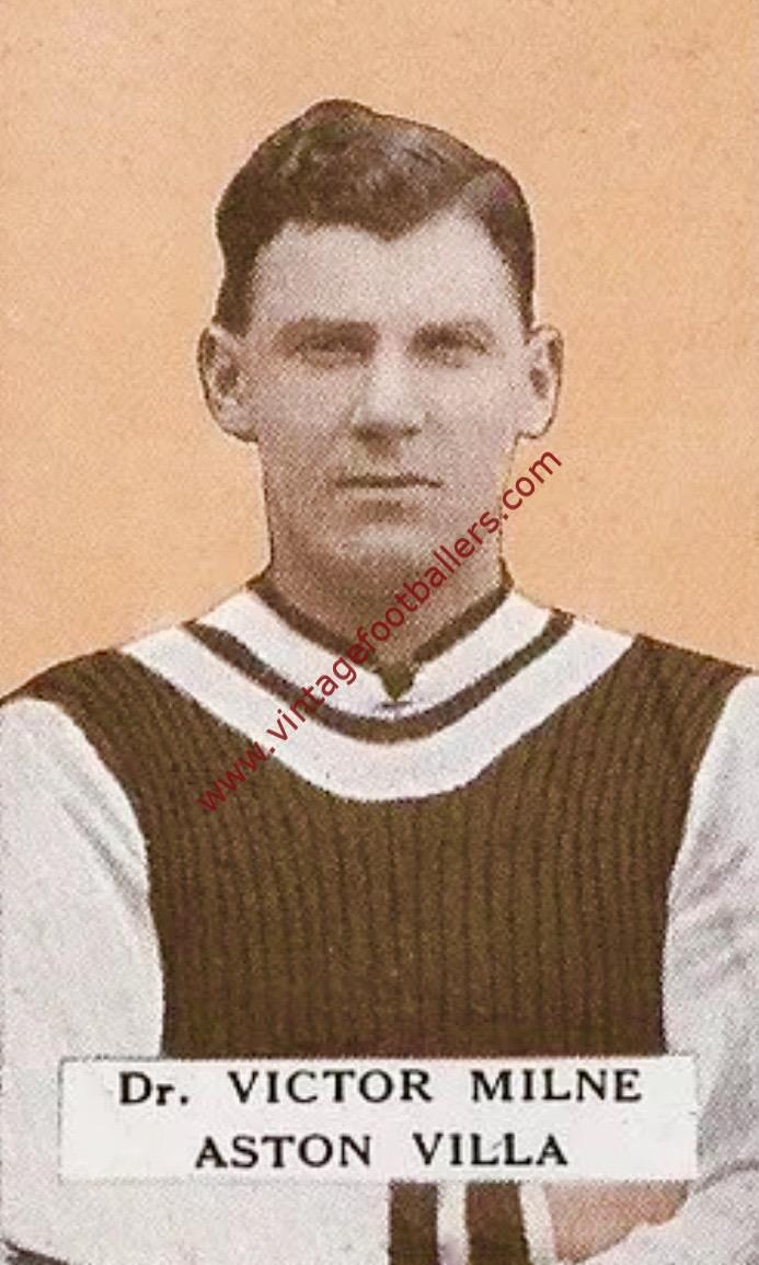 He made his Football League debut against Chelsea in September 1923, and soon established a regular place in the Villa first eleven, and in his first season played 6 FA Cup ties in Villa’s Cup run which saw them reach the 1924 FA Cup Final at Wembley, where they were beaten 2-0 by Newcastle United. Unusually for the time, Milne was the only Scot in Villa’s team, whereas Newcastle had 5 Scottish players, including the scorer of the winning goal, Neil Harris. His only goal for Villa came in a 2-1 win against Notts County at Villa Park in September 1925. He played his last match for Villa in April 1929 at Leicester City and retired from playing in May 1929. Having qualified as a Doctor of Medicine while still playing for Aberdeen, he served Aston Villa as their club doctor from 1930 to 1933.