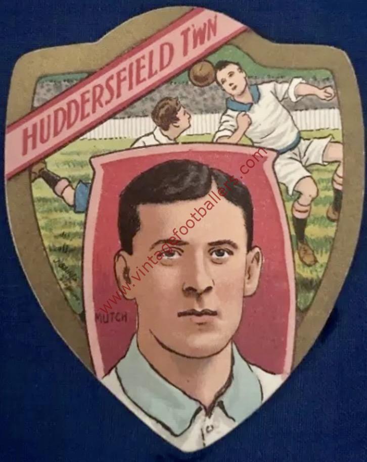 He joined newly inaugurated Second Division club Huddersfield Town for £400 in May 1910 making his Football League debut at Bradford Park Avenue that September in Huddersfield’s inaugural League fixture and playing both sides of the War at Leeds Road, being very much first choice for most of his 12 years at Leeds Road. In April 1920 Mutch received £794 in the club’s first player benefit.