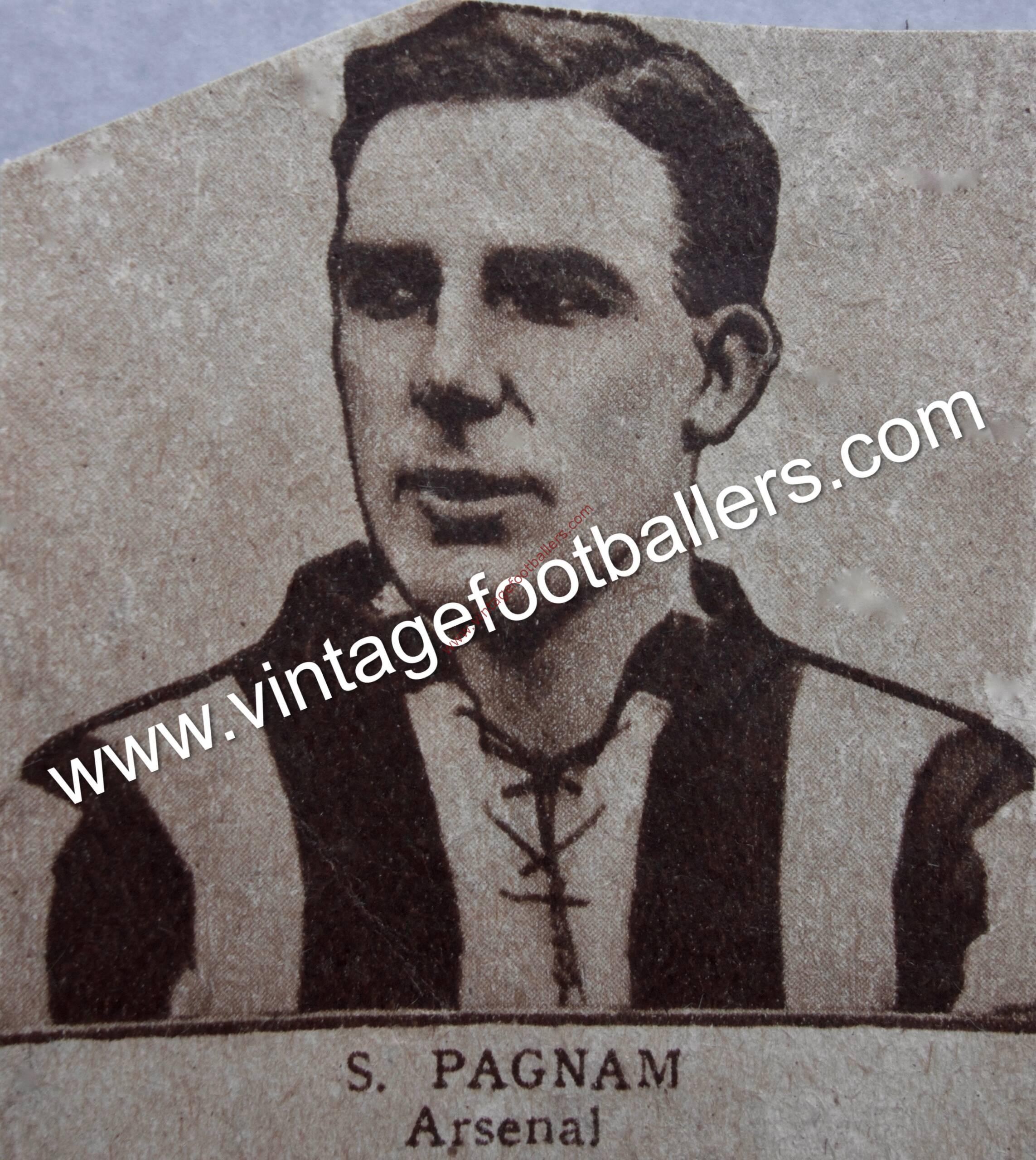 At Arsenal he enjoyed a successful career, playing 53 times and scoring 27 goals in just under 18 months at Highbury. Pagnam finished as Arsenal’s second highest goalscorer in his first season and formed a strong partnership with Harry White up front. He went one better and topped the scoring charts the following season with 14 goals but was sold to Cardiff City for £3,000 in March 1921 with Arsenal in need of funds. His 8 goals in 14 games helped The Bluebirds to promotion to the First Division that summer but a dry spell of 13 games the following season saw him join Watford in December 1921 for £1,000, easily a club‐record fee at the time, and his goalscoring there included three Football League hat-tricks in the space of five games in autumn 1922, revived Watford’s fortunes. He also scored the club’s last goal at Cassio Road and the first at Vicarage Road, scoring 74 goals in 157 games through till February 1927, by when he had been made manager in May 1926, a post he held until the summer of 1929.