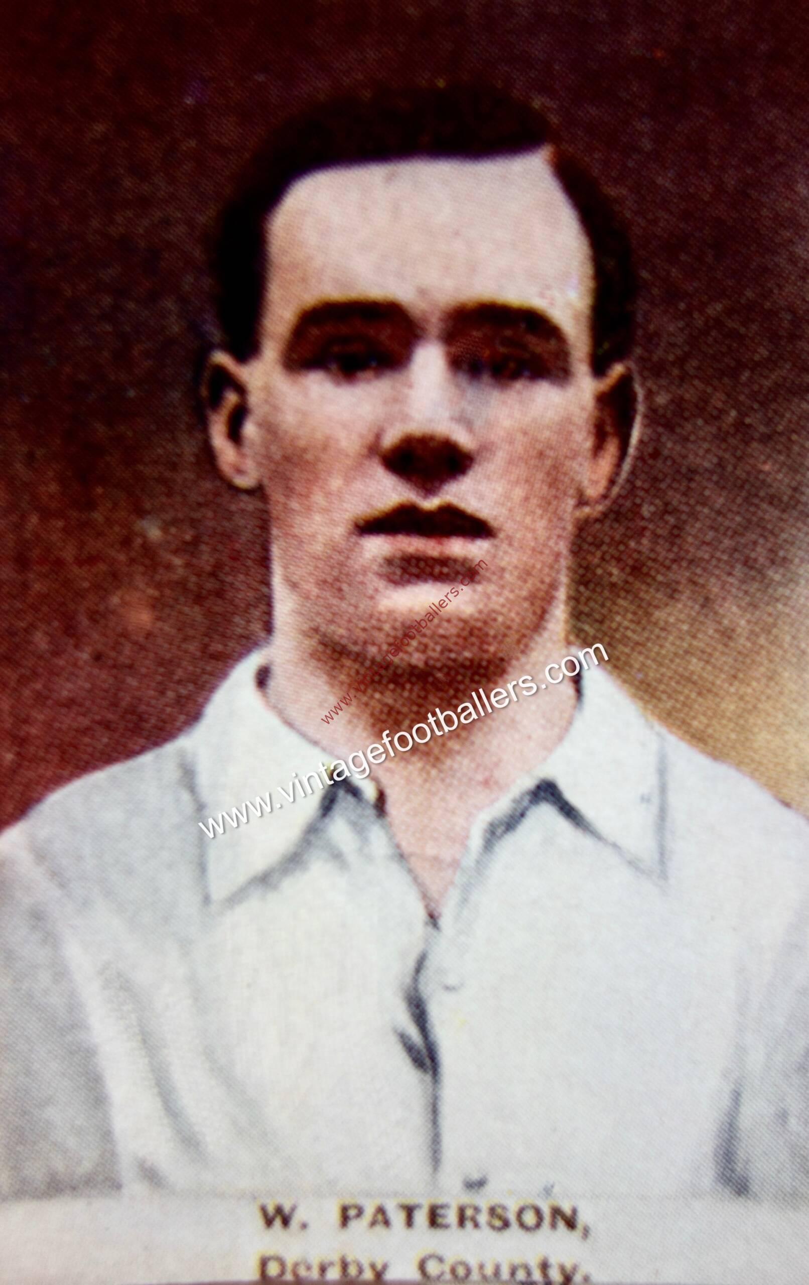 Hill o’ Beath, Fife born centre forward Willie Paterson joined Cowdenbeath from local junior football in 1914 and spent time on loan at Glasgow Rangers in 1916. He joined First Division Derby County in 1920, making his Football League debut against Preston North End in January 1921, scoring on his debut in a 1-1 draw although despite his 8 League goals they were relegated at the end of the season. He played for The Rams until December 1923Â scoring 24 goals in 68 games before joining Armadale on loan, and he subsequently re-joined Cowdenbeath in 1924.